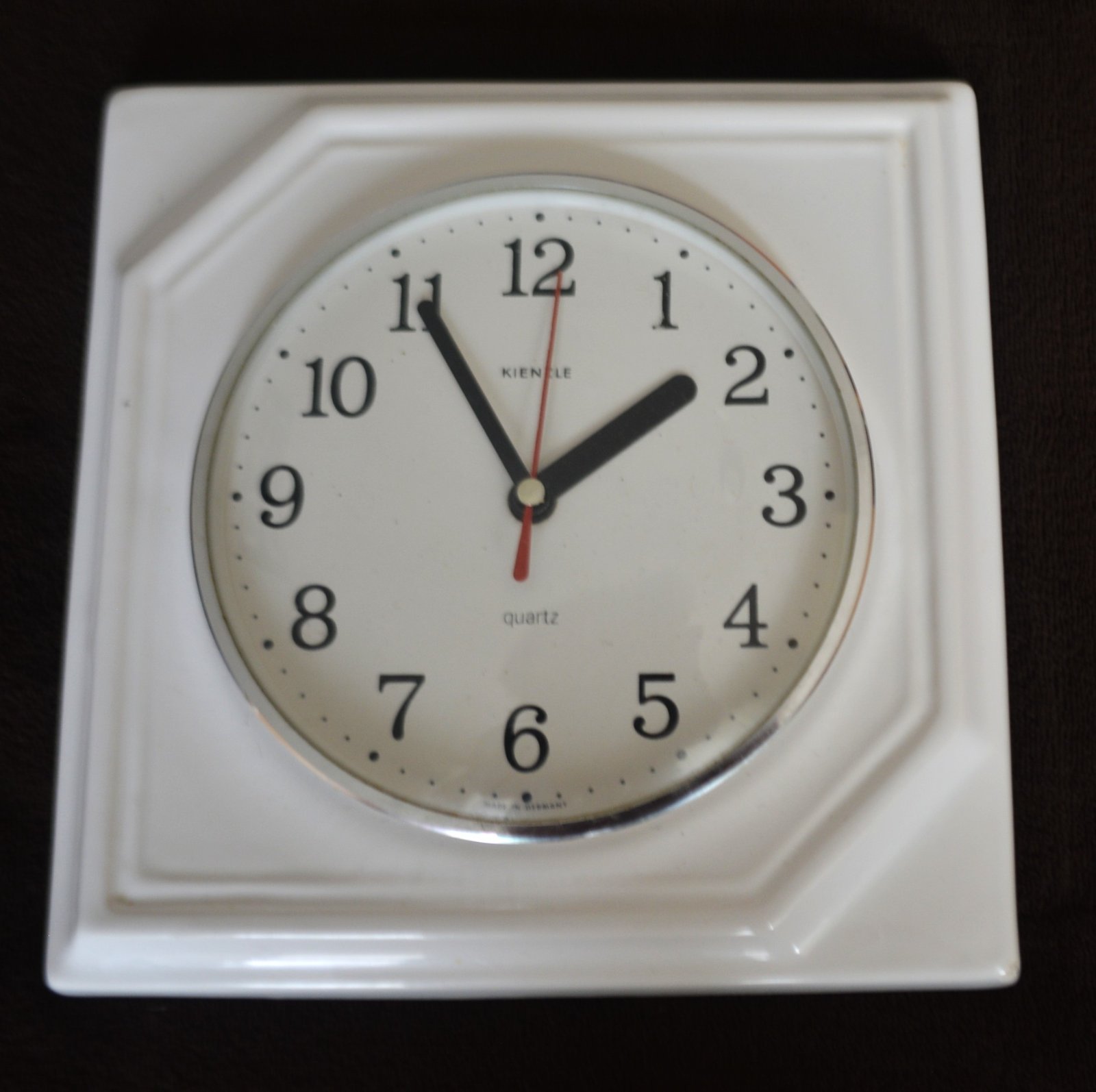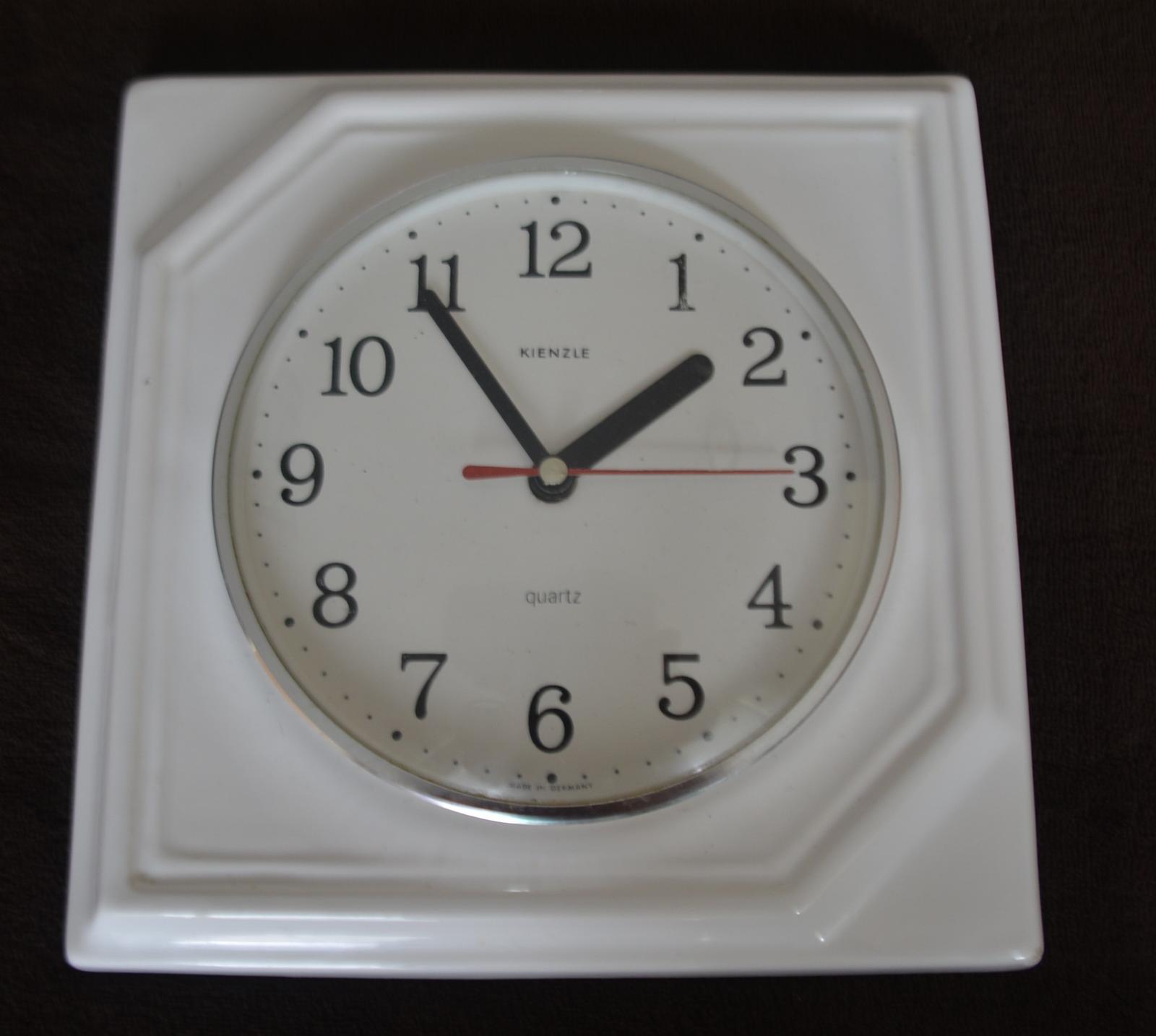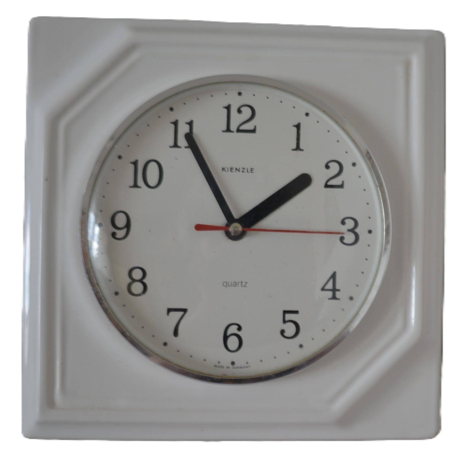 Vintage nástenné hodiny KIENZLE Keramické biele kameninové hodiny z polovice storočia MCM Quartz