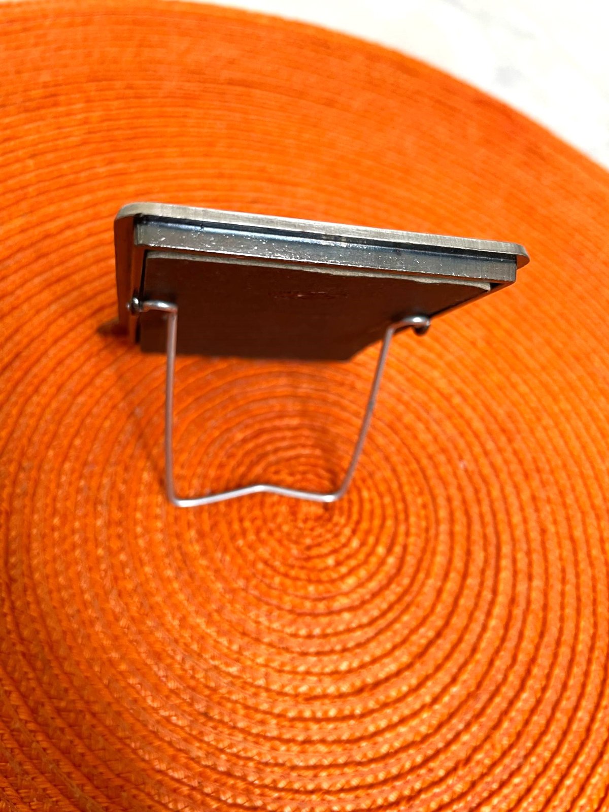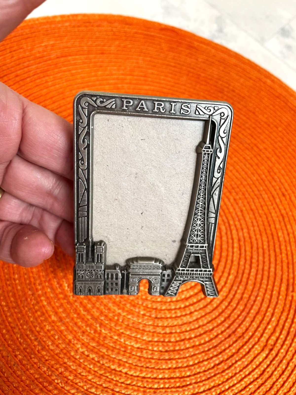 kovový kvalitný menší fotorámik,krásny doplnok, málo používaný, dá sa zavesiť aj ako obrázok,rozmer : 8,5 cm x 6 cm,farba tmavošedá kovová