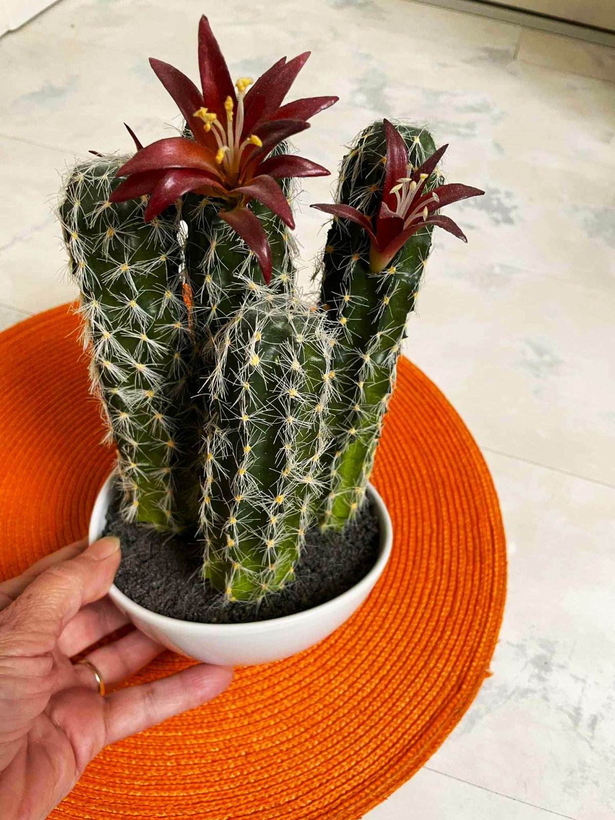 krásny solitér v porcelánovom lodičkovom črepe,v top stave,bol iba vystavený,verne kopíruje reálny kaktus,výška 26 cm,šírka = 16 cm