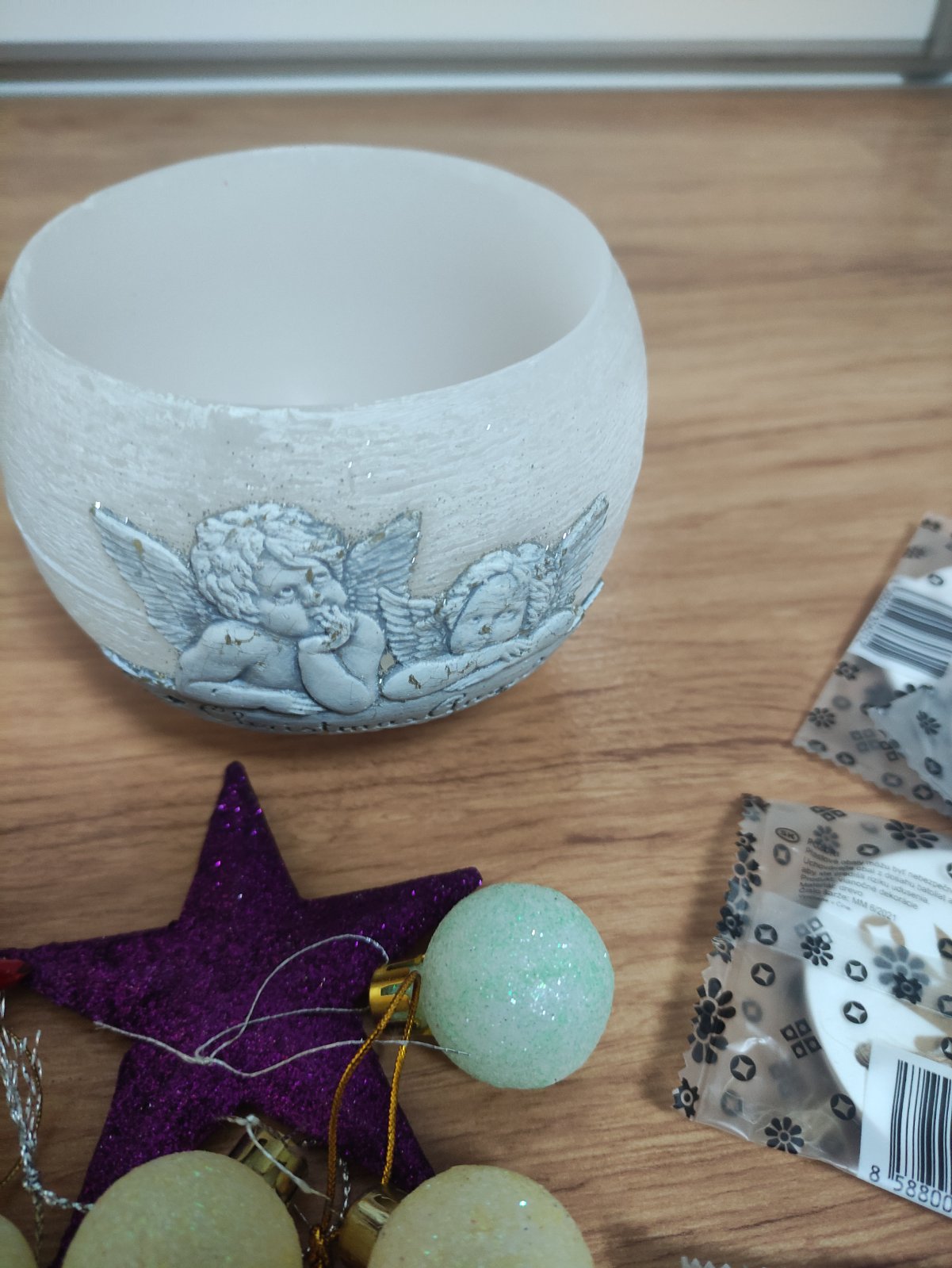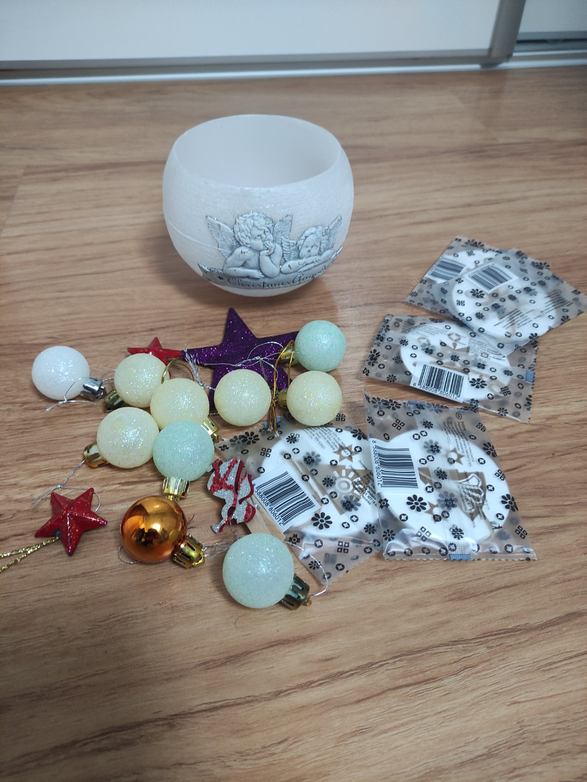 Ponúkam na predaj vianočné dekorácie - svietnik na čajovú sviečku a ozdoby na stromček alebo na ďalšiu tvorbu.