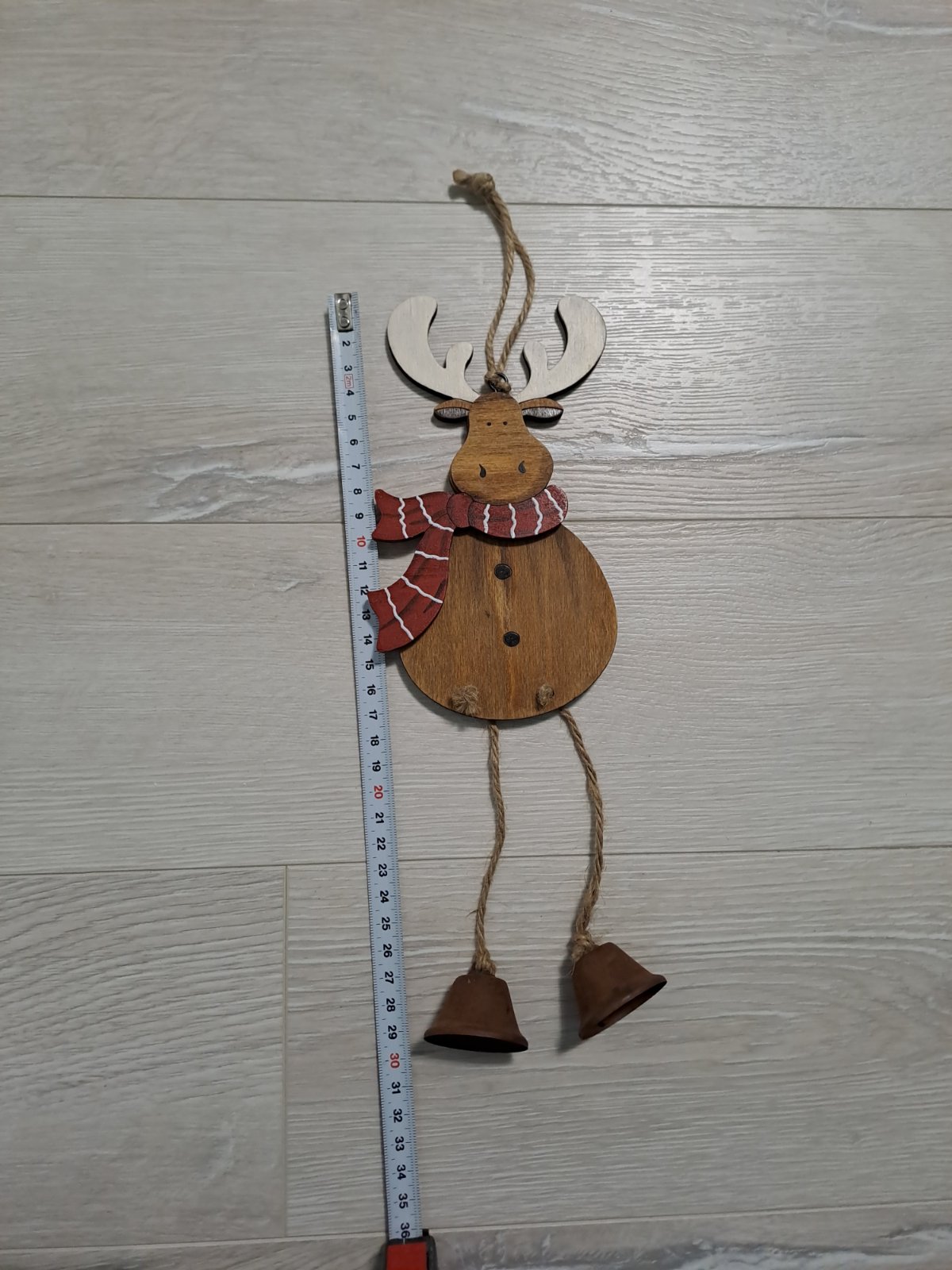 Krásny vianočný sobík na zavesenie na stromček alebo na dvere. Materiál: drevo. Viď rozmery.