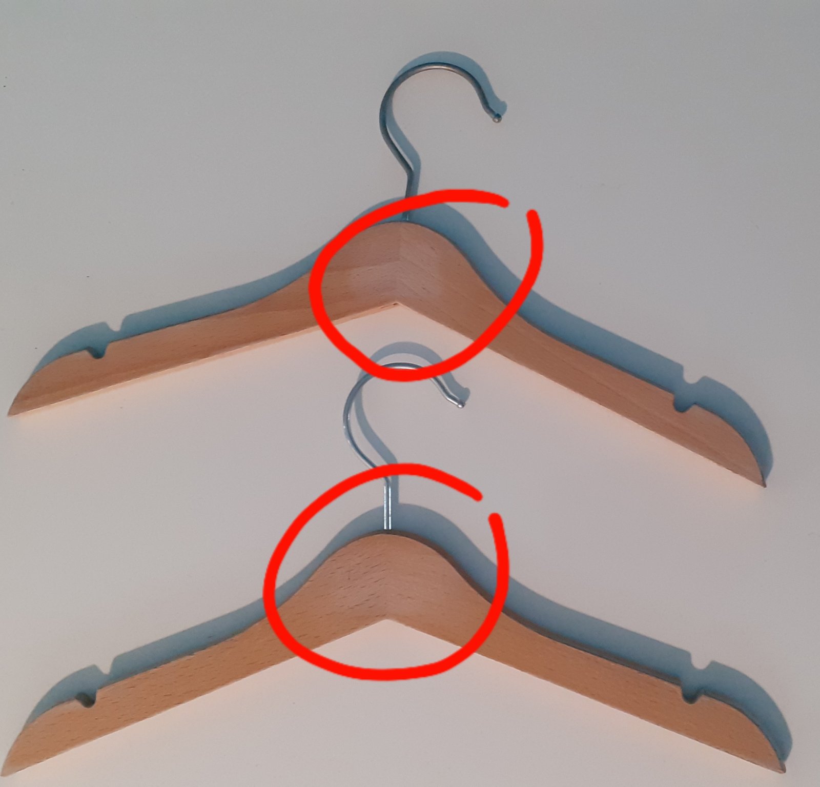 Lak mierny ošúchaný na hranách. Na 2 vešiakoch pod háčikom ošúchaný lak - bola tam menovka.