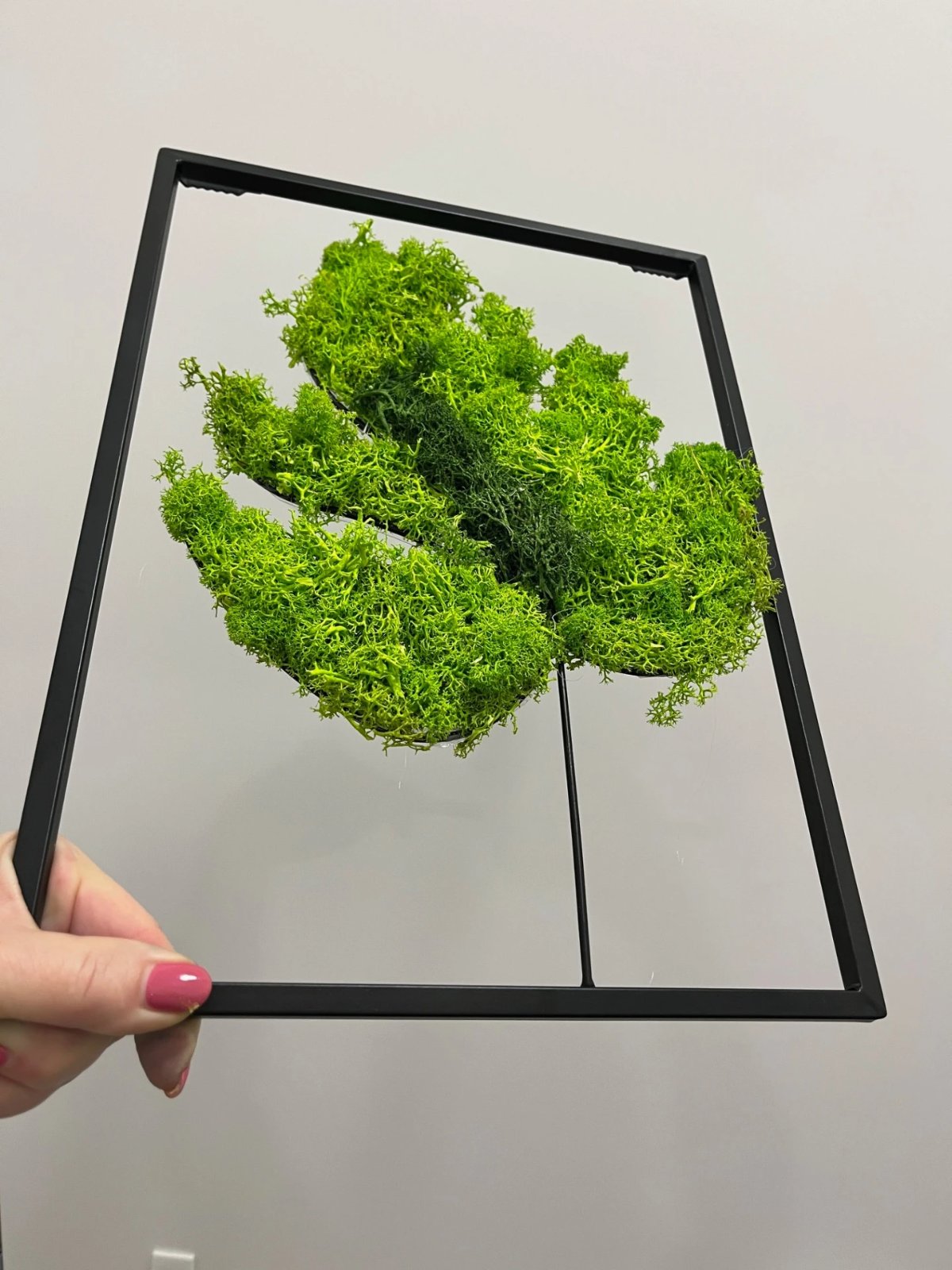 Tento originálny 3D machový obraz s rozmermi 35 × 25 cm spája moderný dizajn s prírodným prvkom. Silueta ikonického listu Monstery je ručne vytvorená zo stabilizovaného machu, ktorý si dlhodobo uchováva svoju farbu, mäkkosť a štruktúru - bez nutnosti zálievky či špeciálnej starostlivosti.