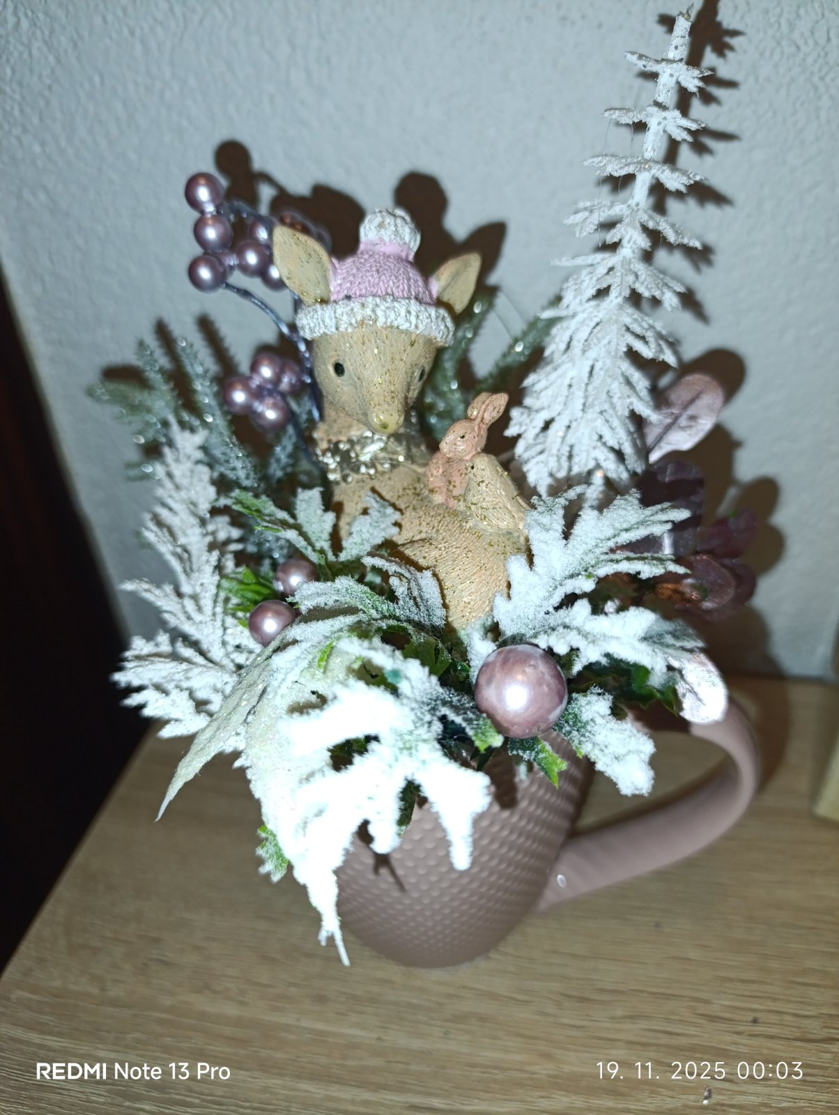 Mnou vyrobená dekorácia v hrnčeku.Zútulní váš domov nielen počas Vianočných sviatkov,ale aj počas dlhých zimných mesiacov.Práve dokončená ☺️V skutočnosti je krásne trblietava,ale nedá sa mi lepšie odfotiť.