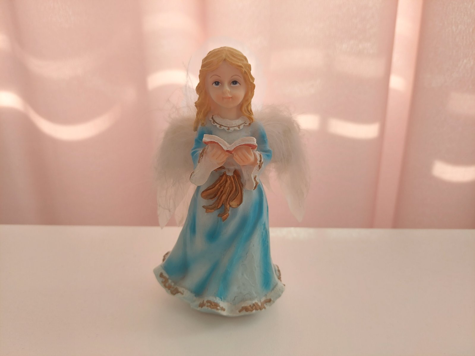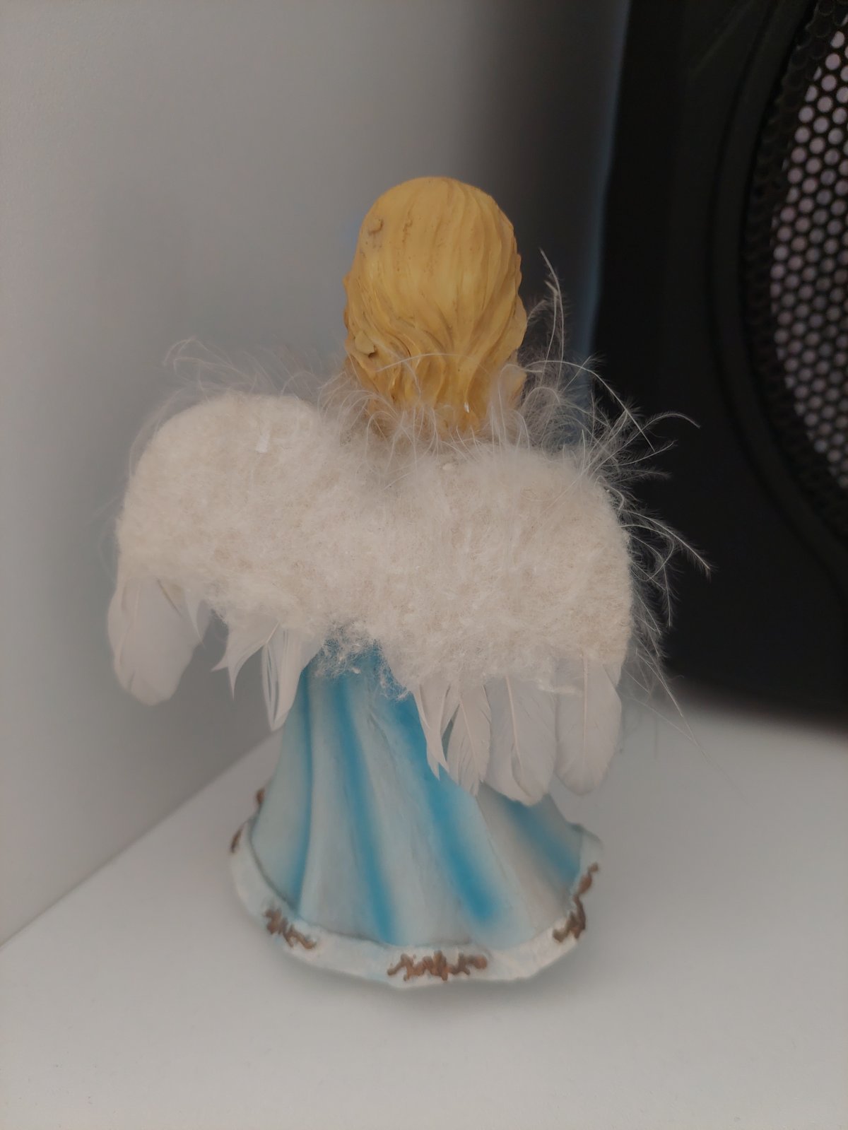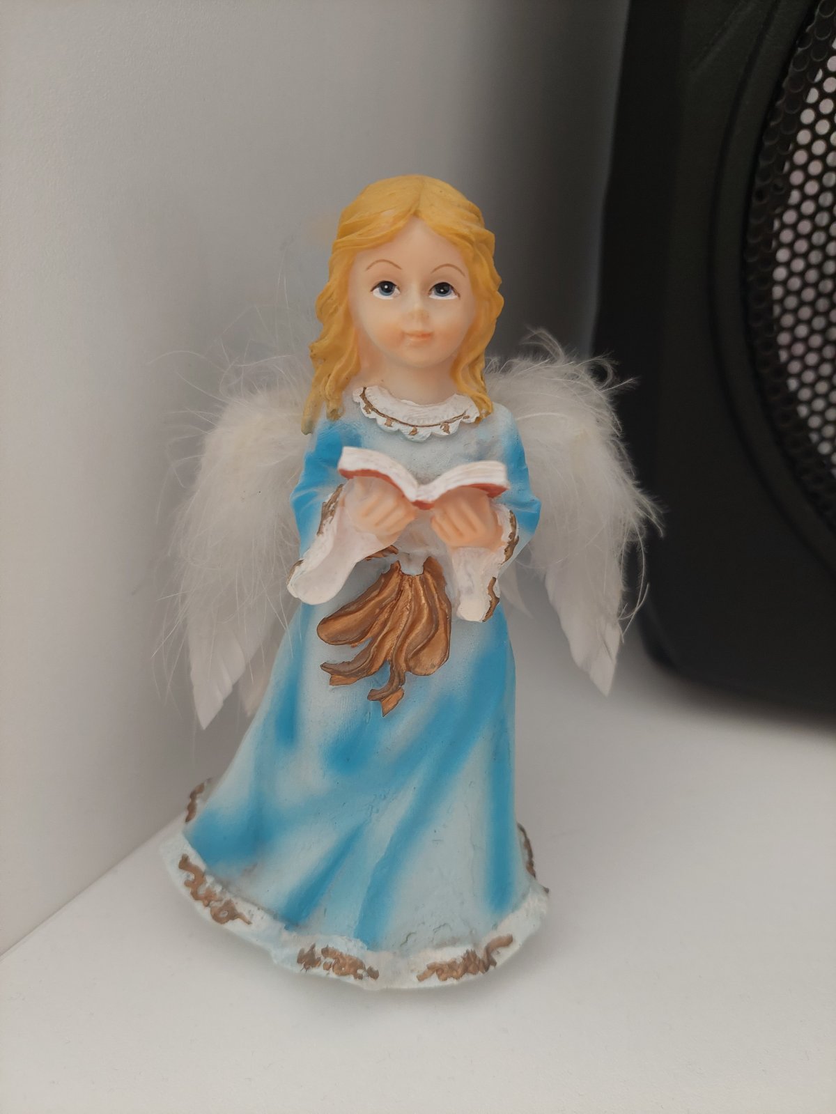 Anjelik s blond vlasmi 14 cm vysoky,soška