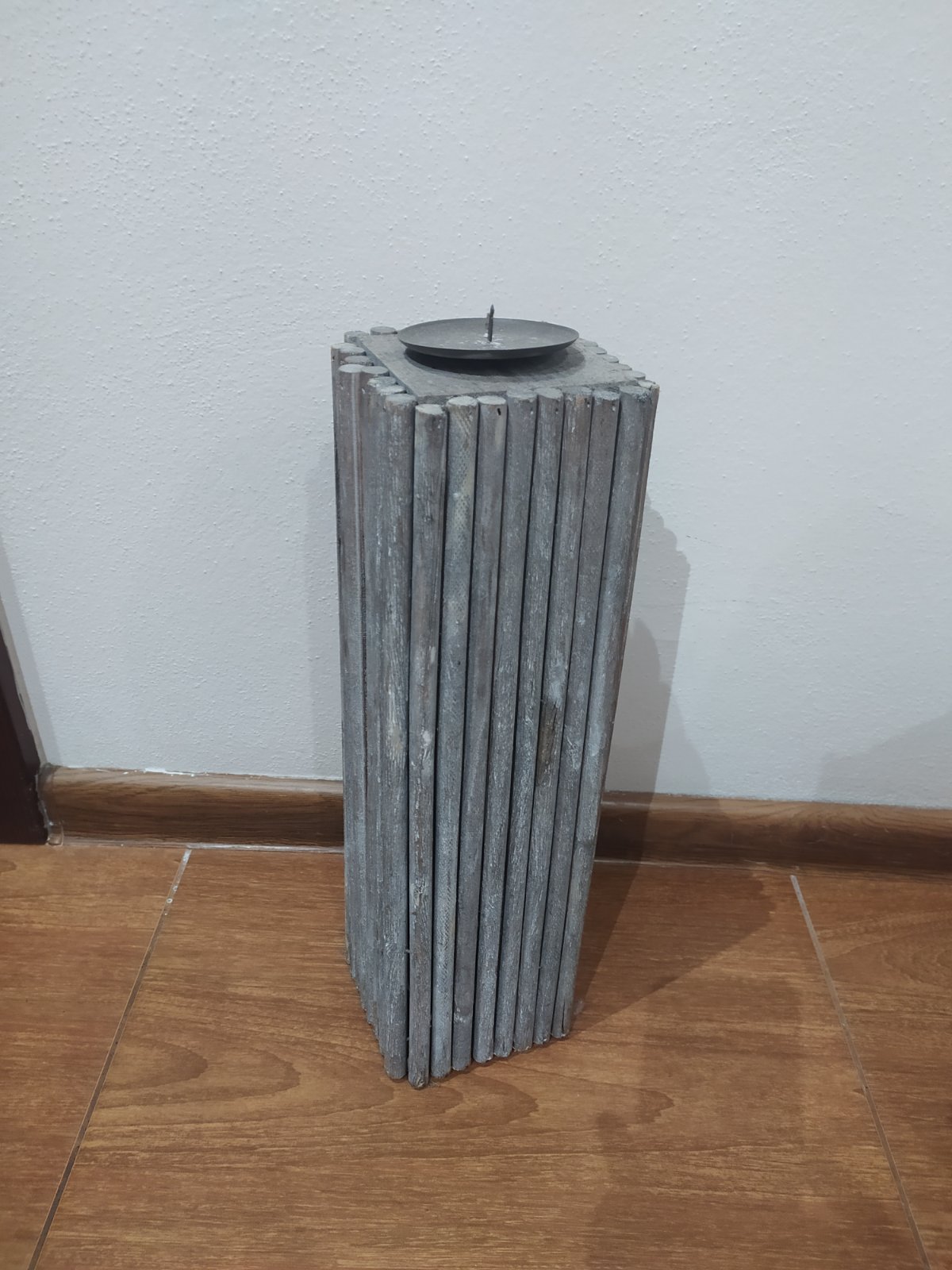 Dekoračný svietnik na sviečku. S možnosťou vytiahnutia vnútornej sklenenej výplne. Výška svietnika 24 cm.