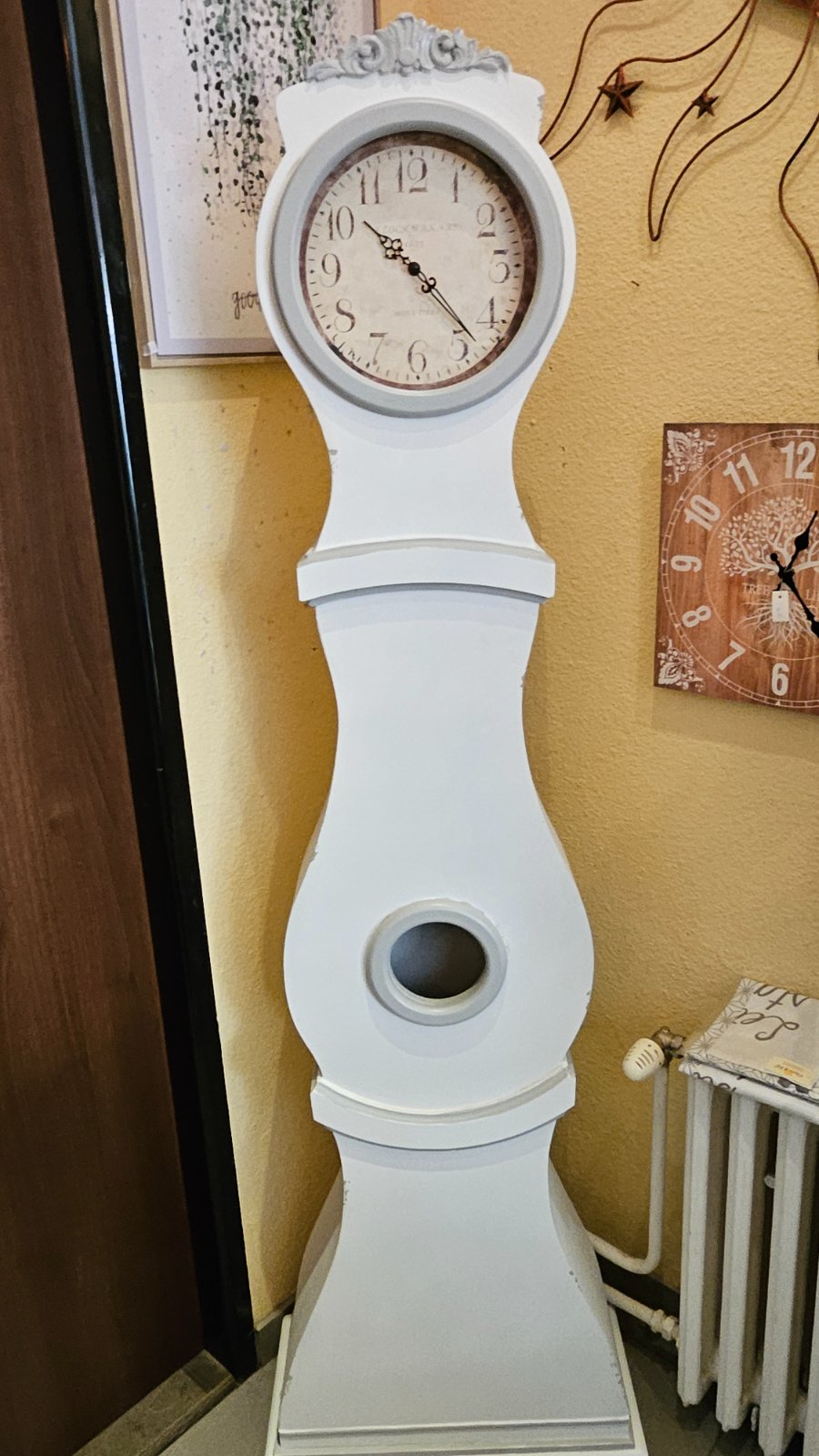Stojace hodiny v antik bielej patine s ošúchaním. Shabby chic hodiny,ktoré dodajú vznešený štýl vašej domácnosti. ( odreniny sú úmyselné, od výroby)