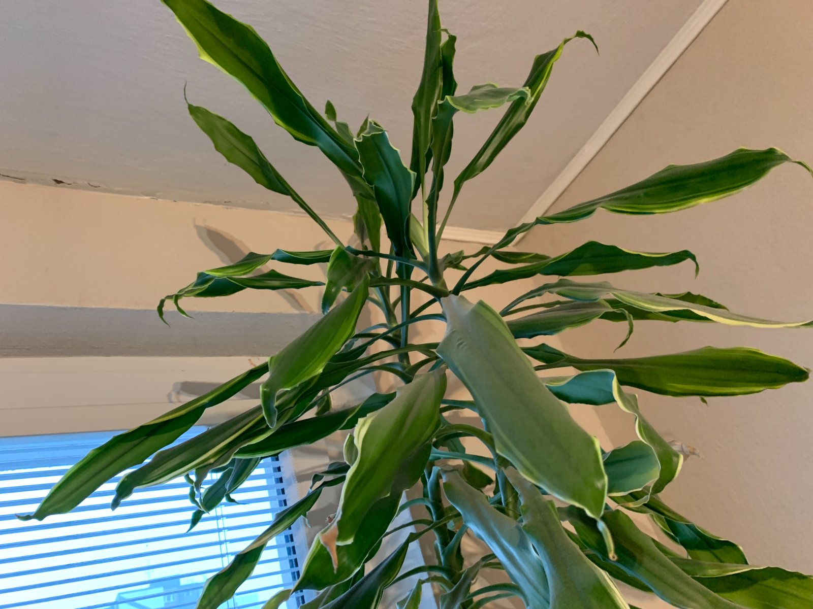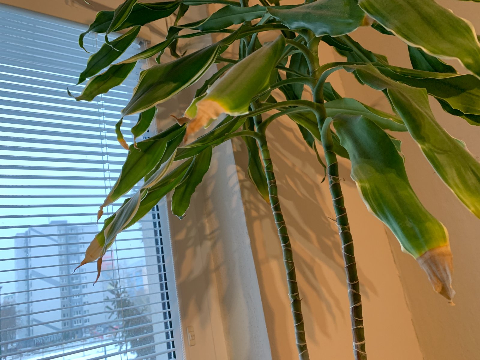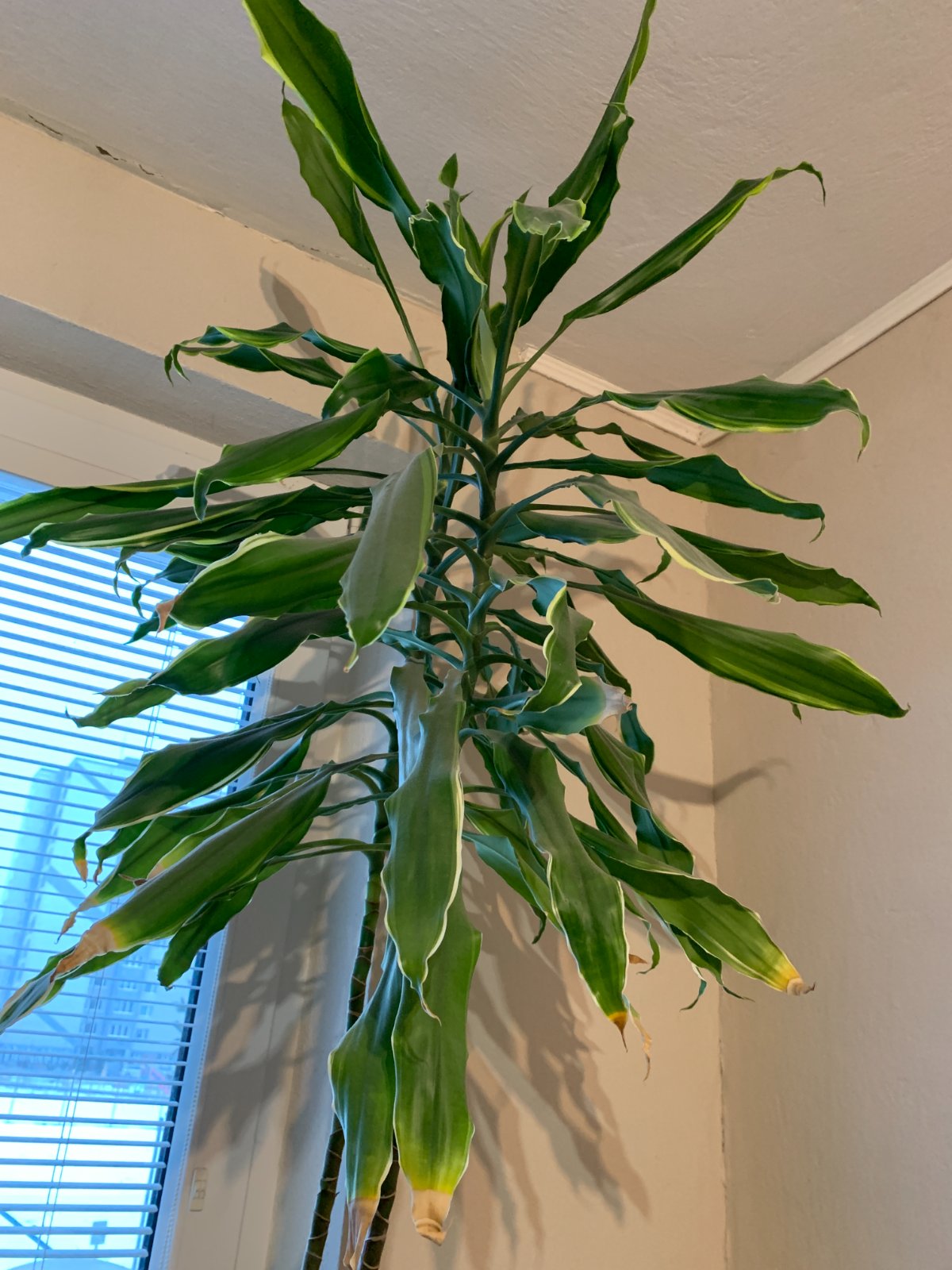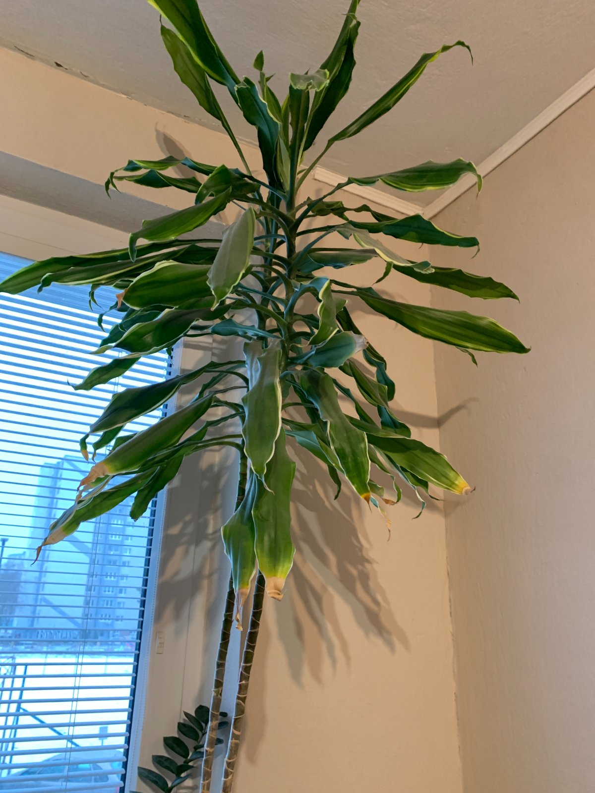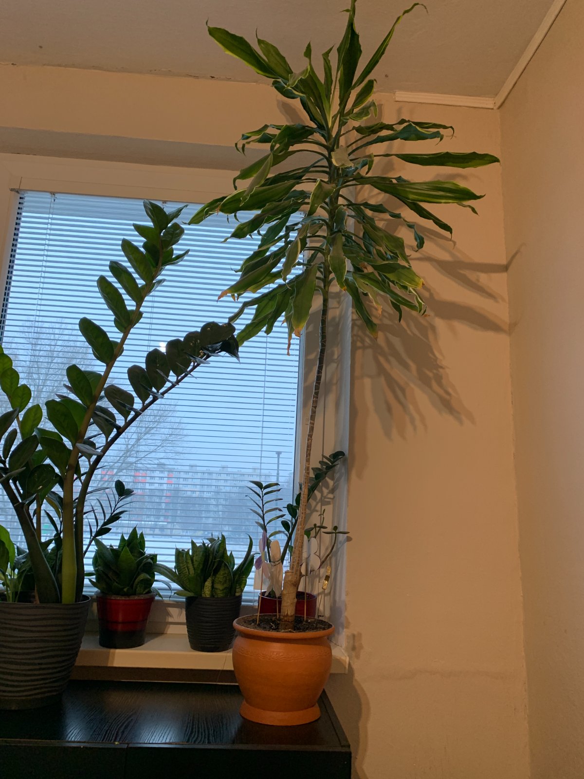 Krásna vysoká dracéna, pre nás do bytu už privysoká. Samotný kvet má cca 155cm + kvetináč 18cm. Spodné listy majú hnedé končeky, neviem, či je to chyba v starostlivosti alebo prirodzený proces. Iba osobne v BA.