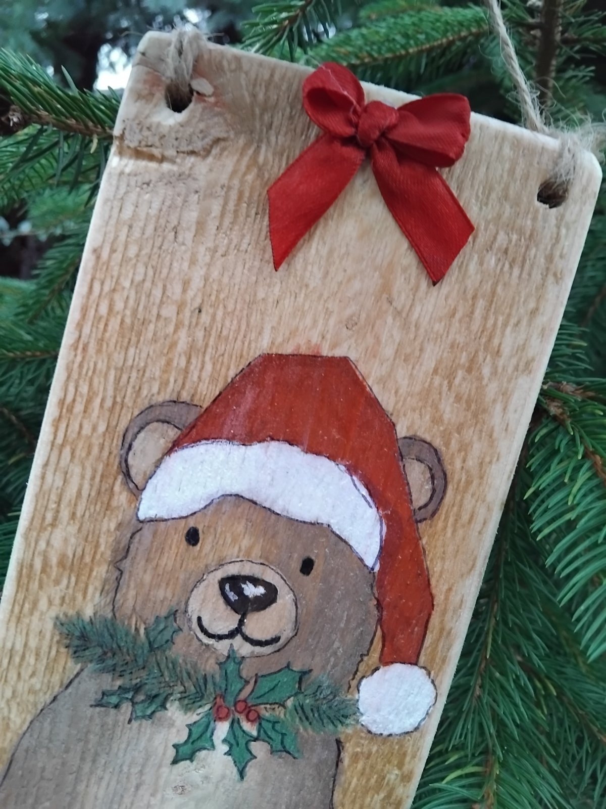 Ručne maľovany obrazok na dreve so šnurkou na zavesenie. Obrazok zafixovany lakom. Smrekove drevo.