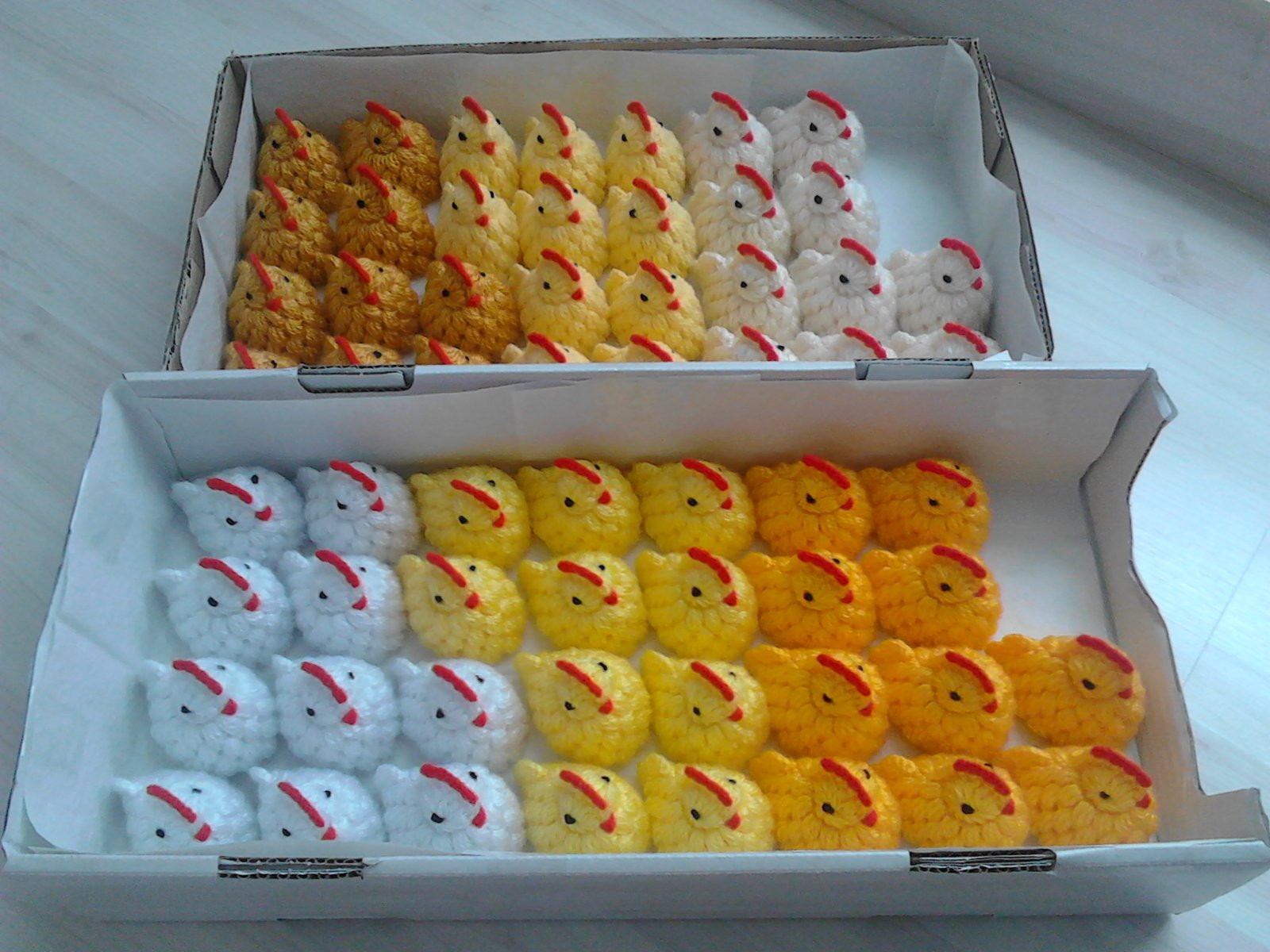 háčkované kuriatka z vlny (výška cca: 5,5cm) - cena: 1euro