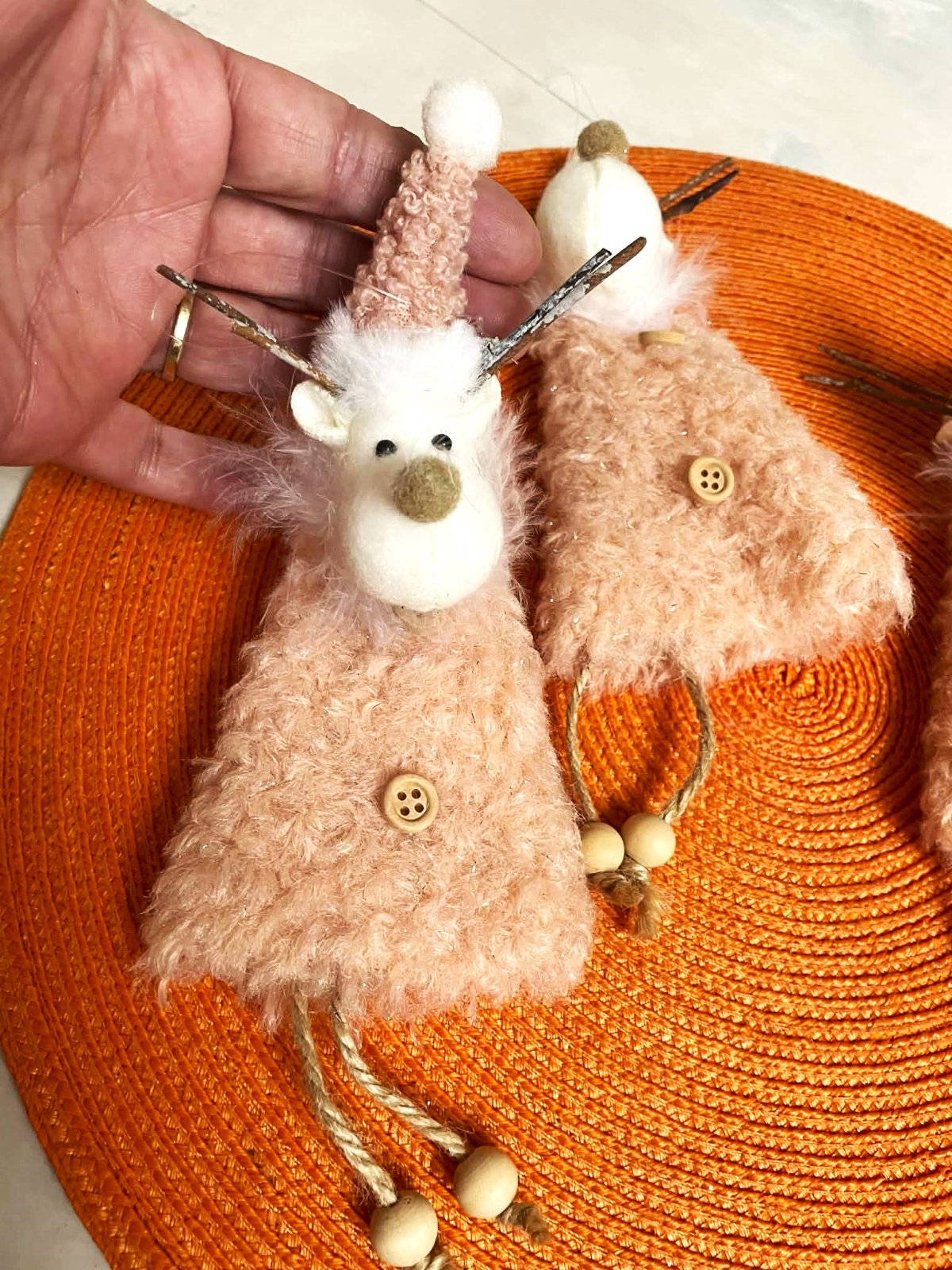 krásny naturálny naturálny sobík na zavesenie,použitý na 1 Vianoce,výška = 24 cm,cena je za 1 ks,mám v ponuke 3 rovnaké kusy