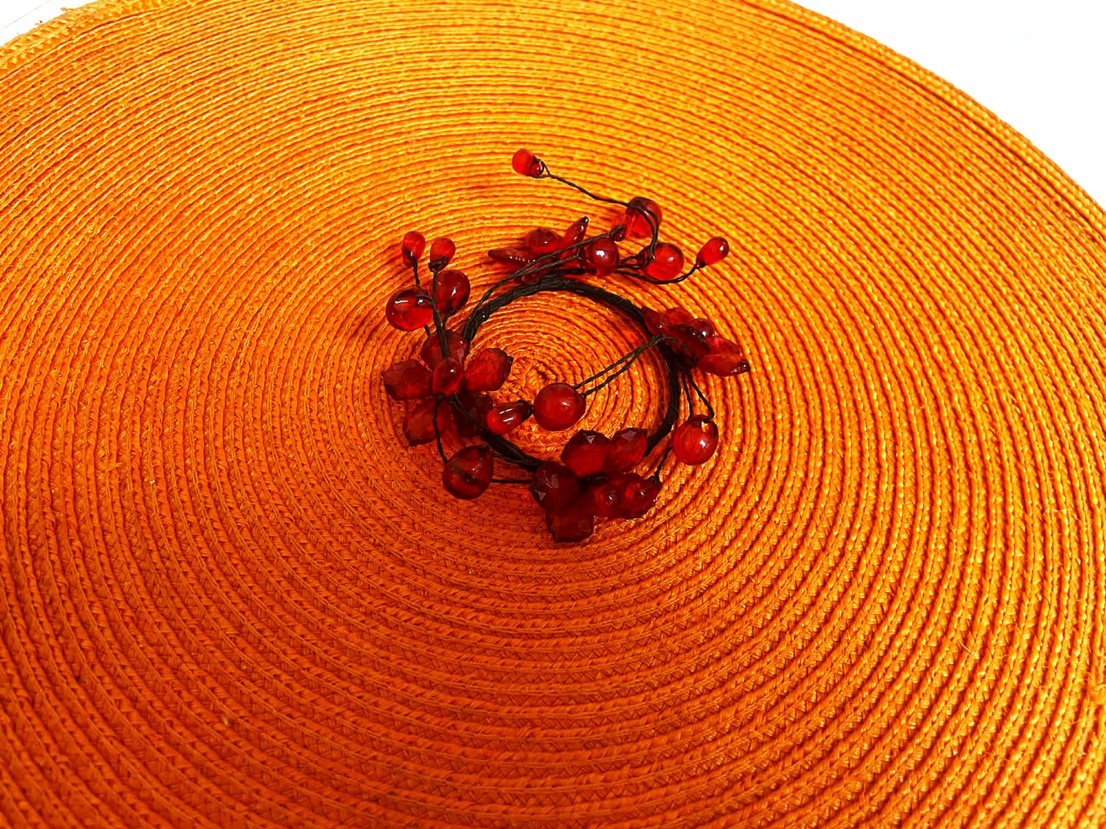 venček na sviečku,vhodný k aranžovaniu sviečok,s priesvitnými červenými korálkami, priemer = 5 cm,max. 5,3 cm, drôtik je ohybný