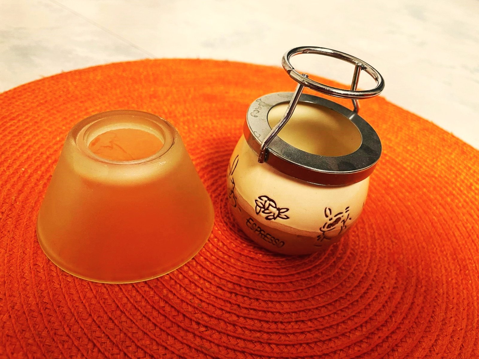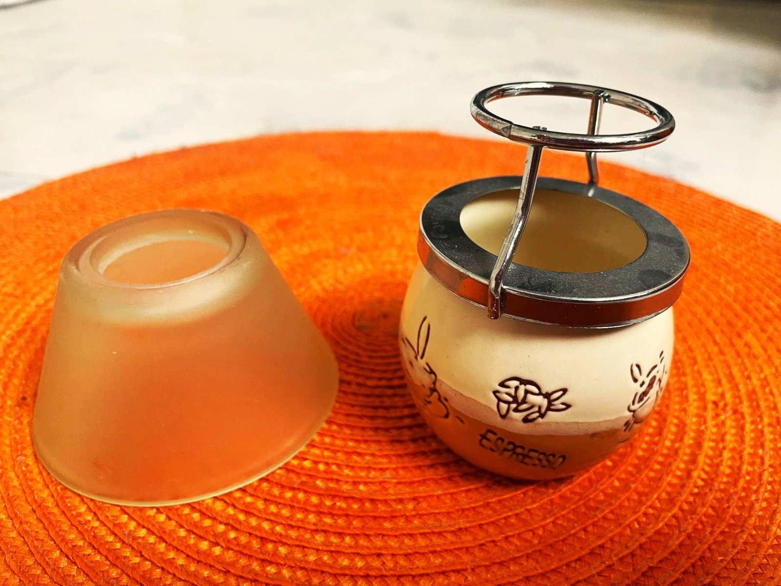 zaujímavá,málo používaná....nie je to lampa na vonný olej,iba dekoratívna,výška cca = 10 cm, šírka = 7 cm - priemer spodný - klobúka