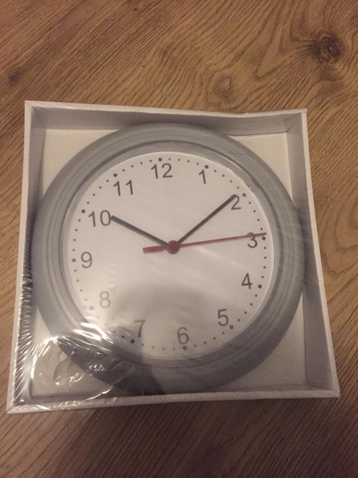 Nepoužívané, nové hodiny na baterku. Výška je 17cm a šírka 12cm. Stred je pohyblivý dá sa nakláňať, či mierne hore alebo dole.