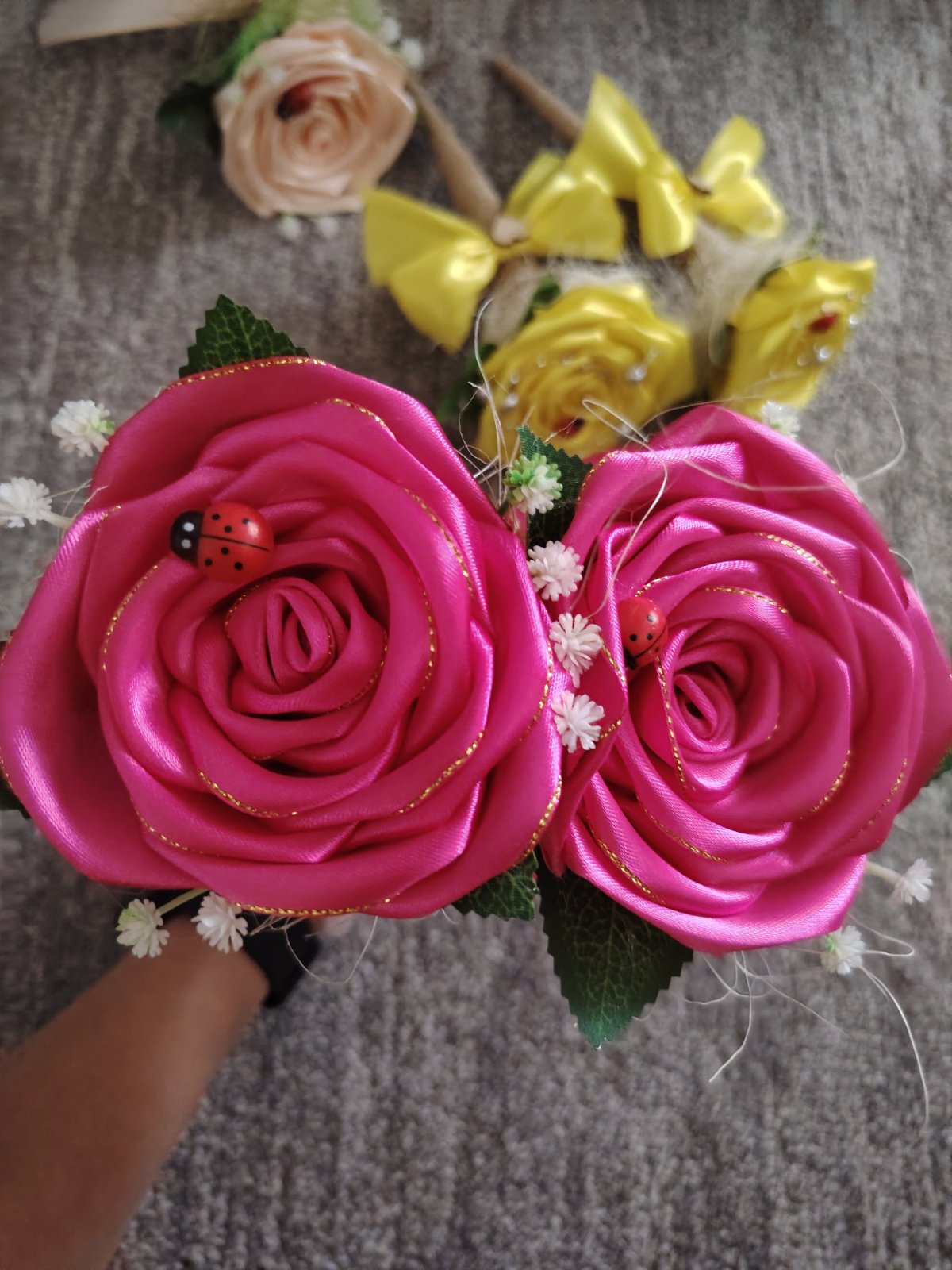 Pekný deň , ponúkam saténové ružičky vhodné ako darček pre pani učiteľku či inu príležitosť všetky farby k dispozícii stačí zanechať správu 😊 cena za kus 5€ pri odbere 4 a viac cena za jednu 4,5€