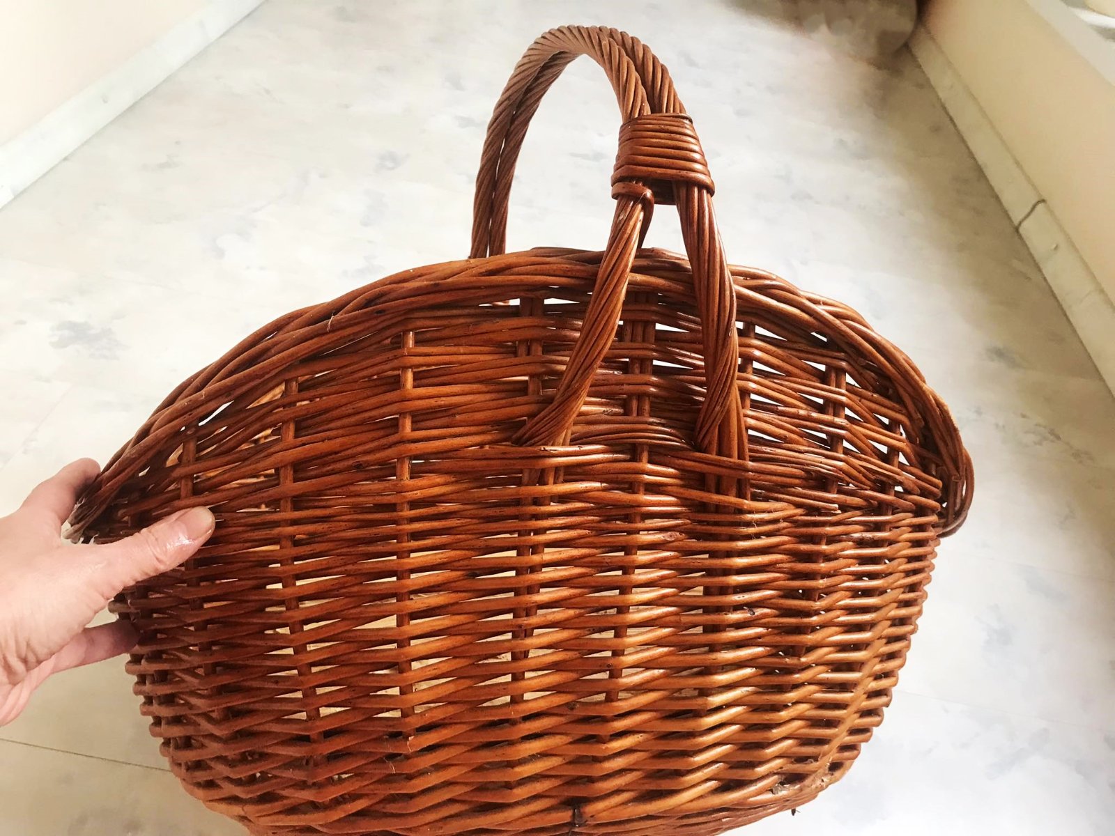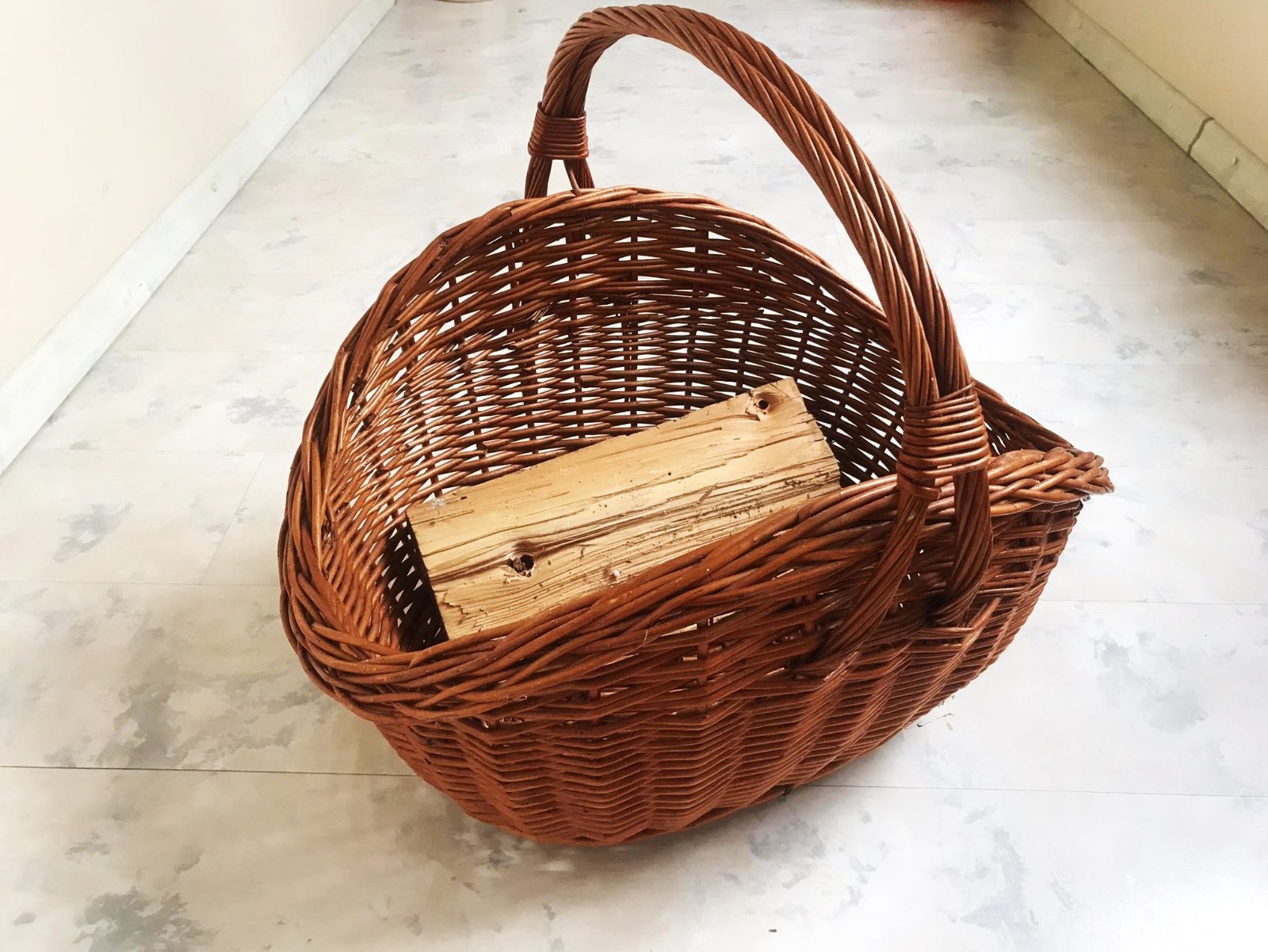 kvalitný min.užívaný veľký priestranný kôš na drevo s rúčkou,veľa do neho vojde,kvalitný polakovaný výplet,top stav,šírka koša = 58 cm, výška komplet s rúčkou = 60 cm