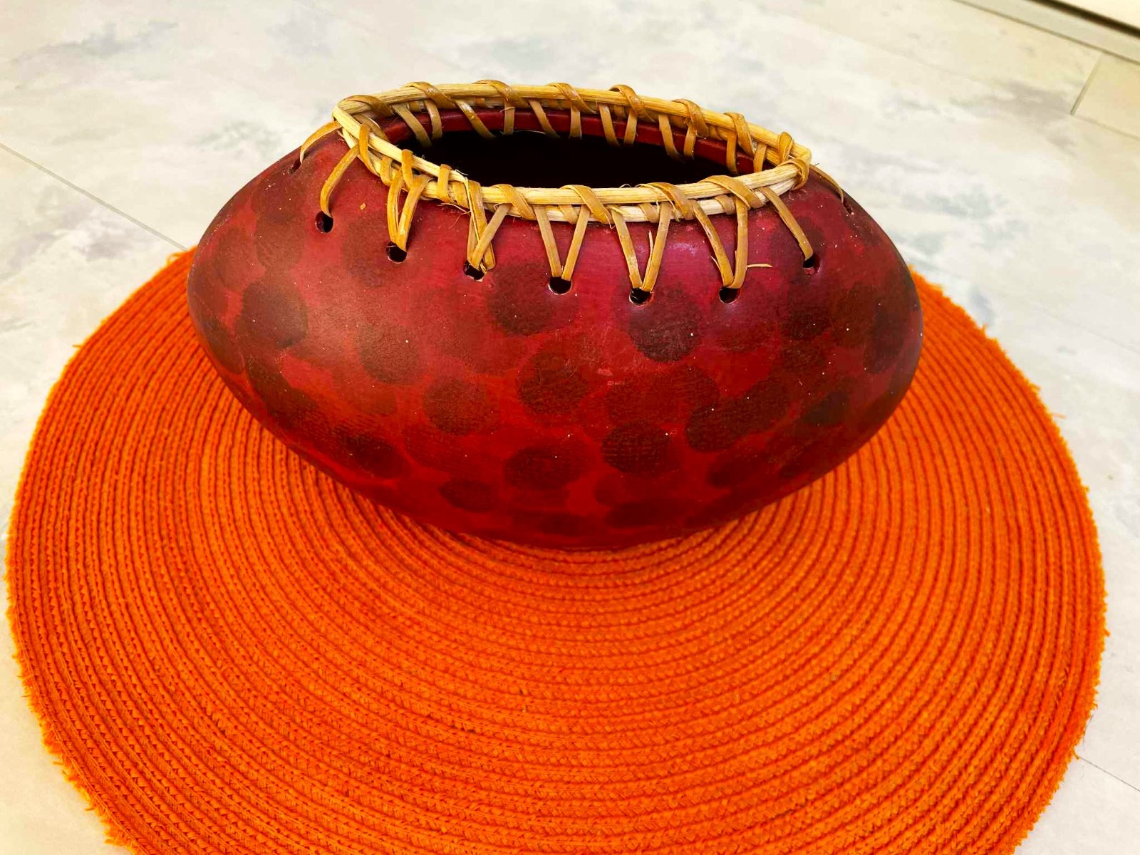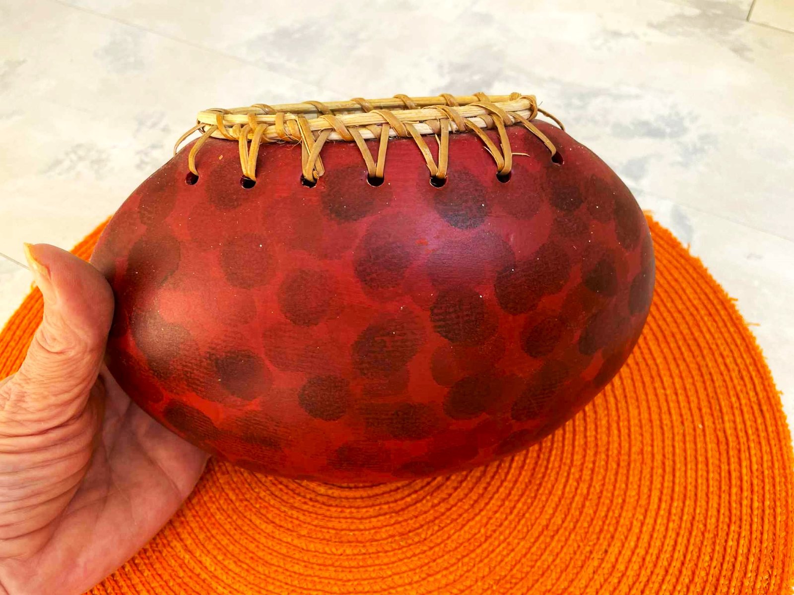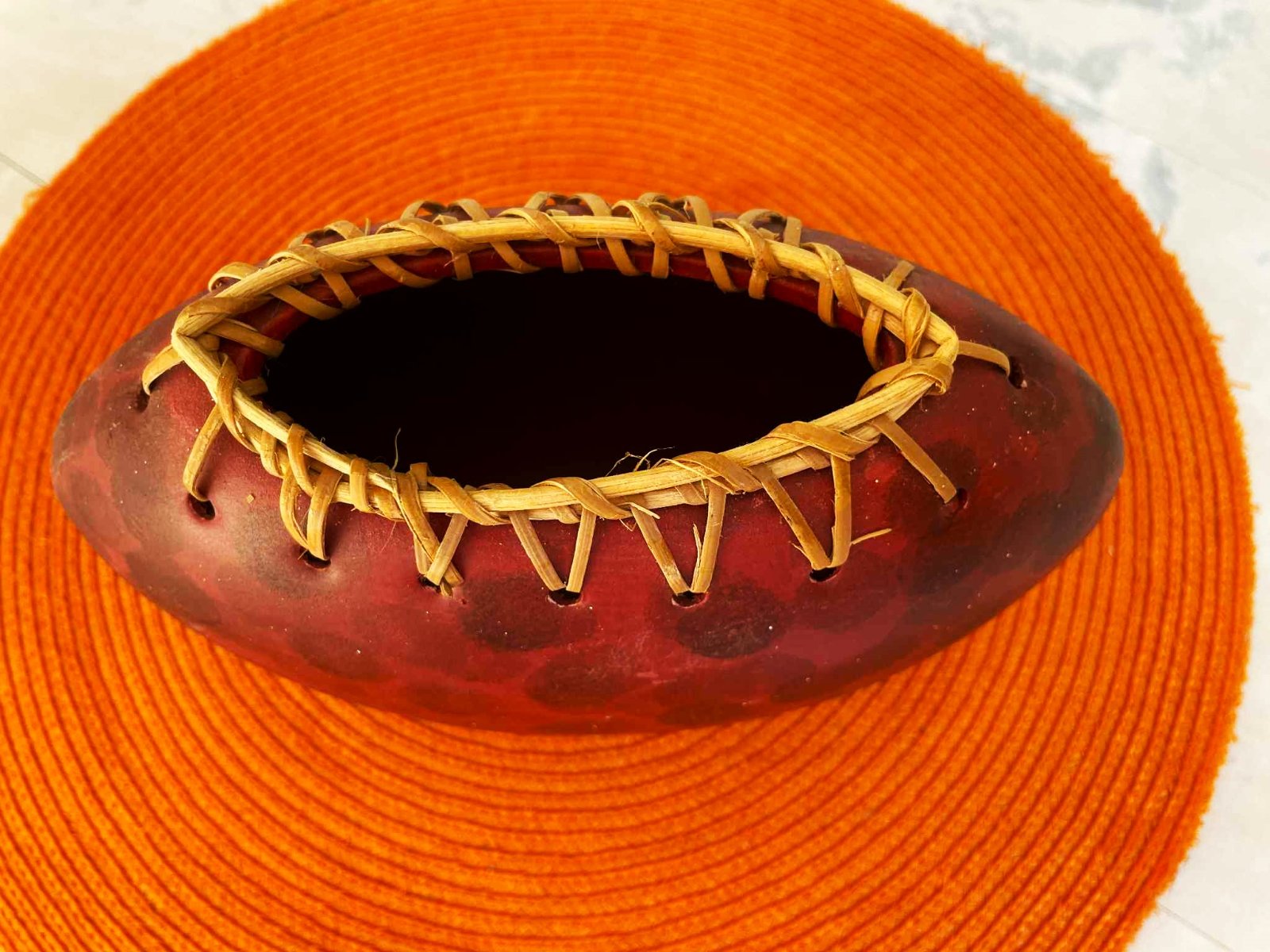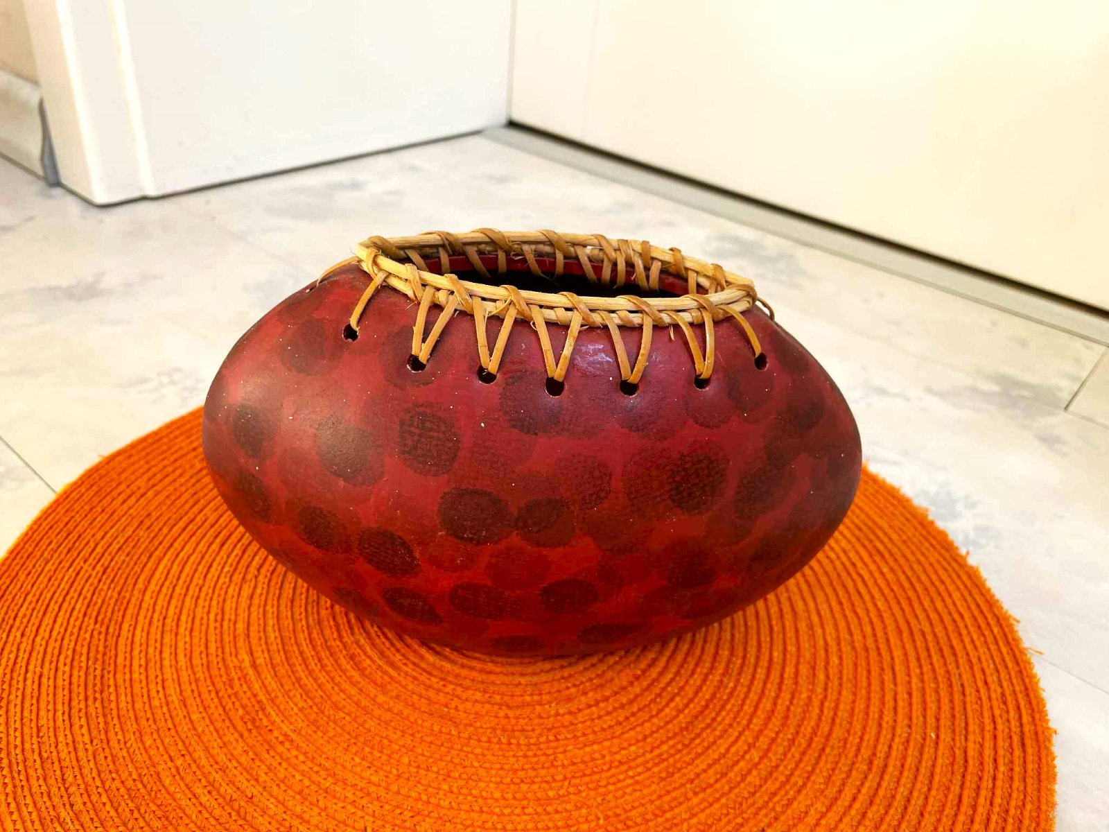 nádherná a zaujímavá naturálna etno váza ,ukončená lykom,zaujímavý doplnok,kvety naaranžované kvôli ilustrácii,výška = 14 cm, šírka v najširšej časti = 23 cm