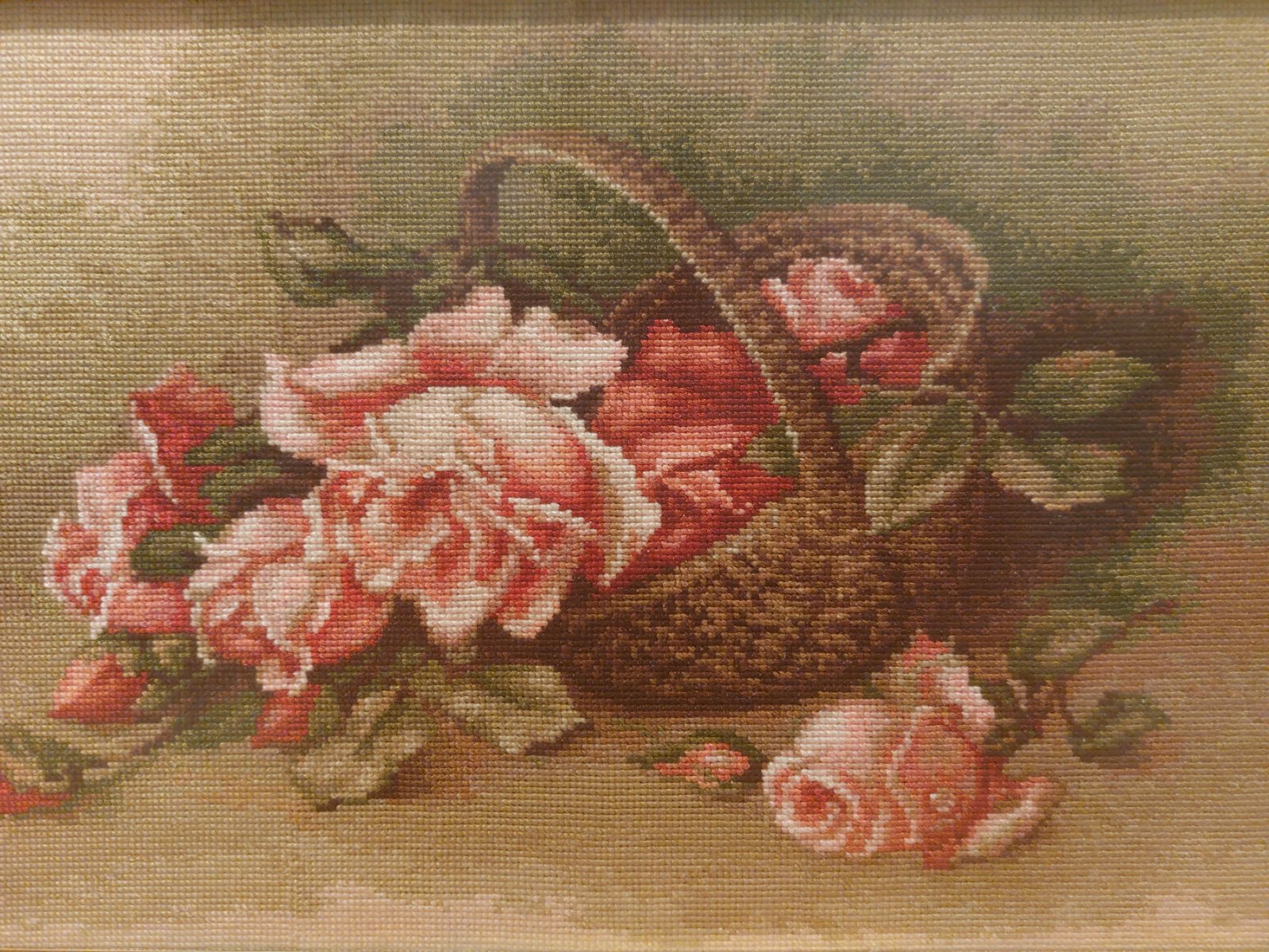 Ručne vyšívaný obraz " Rúže v košíku "