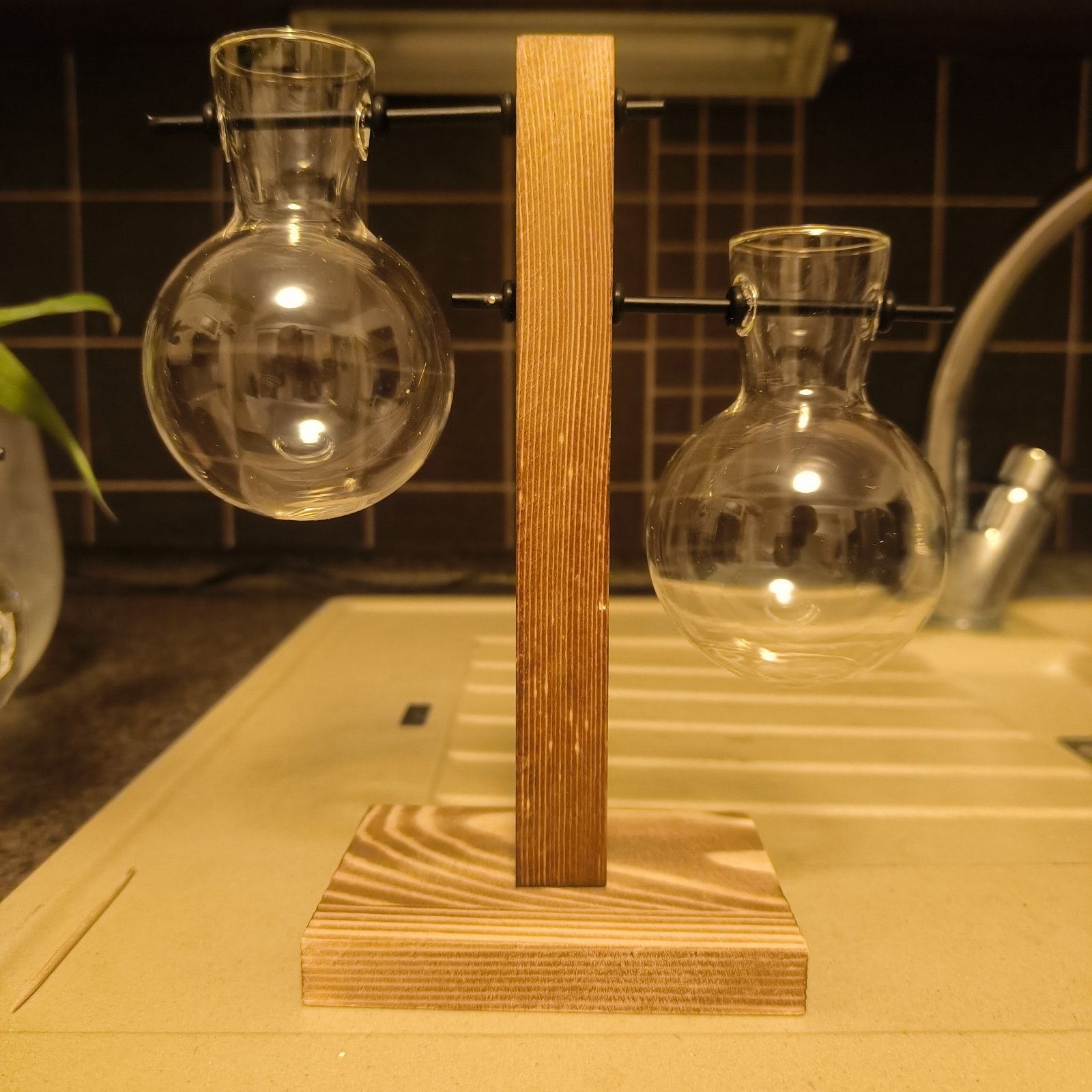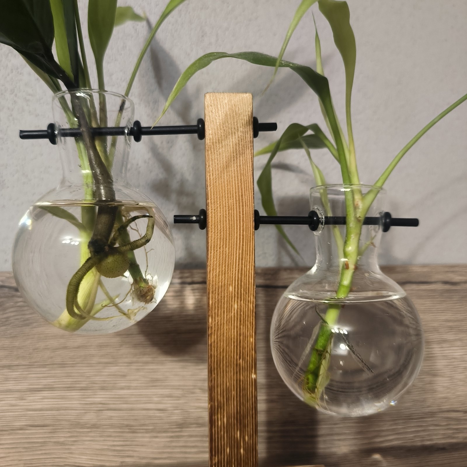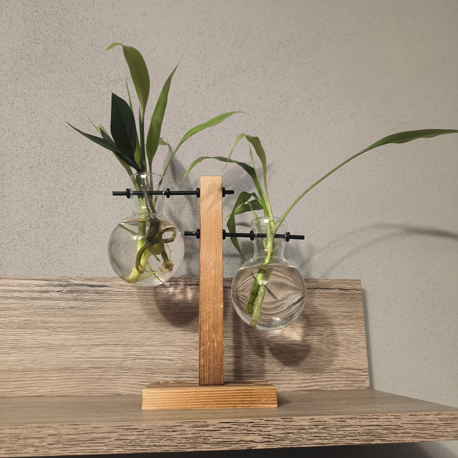 Predám hydroponickú vázu, drevená konštrukcia + dve sklenené nádobky, nepoškodenú.