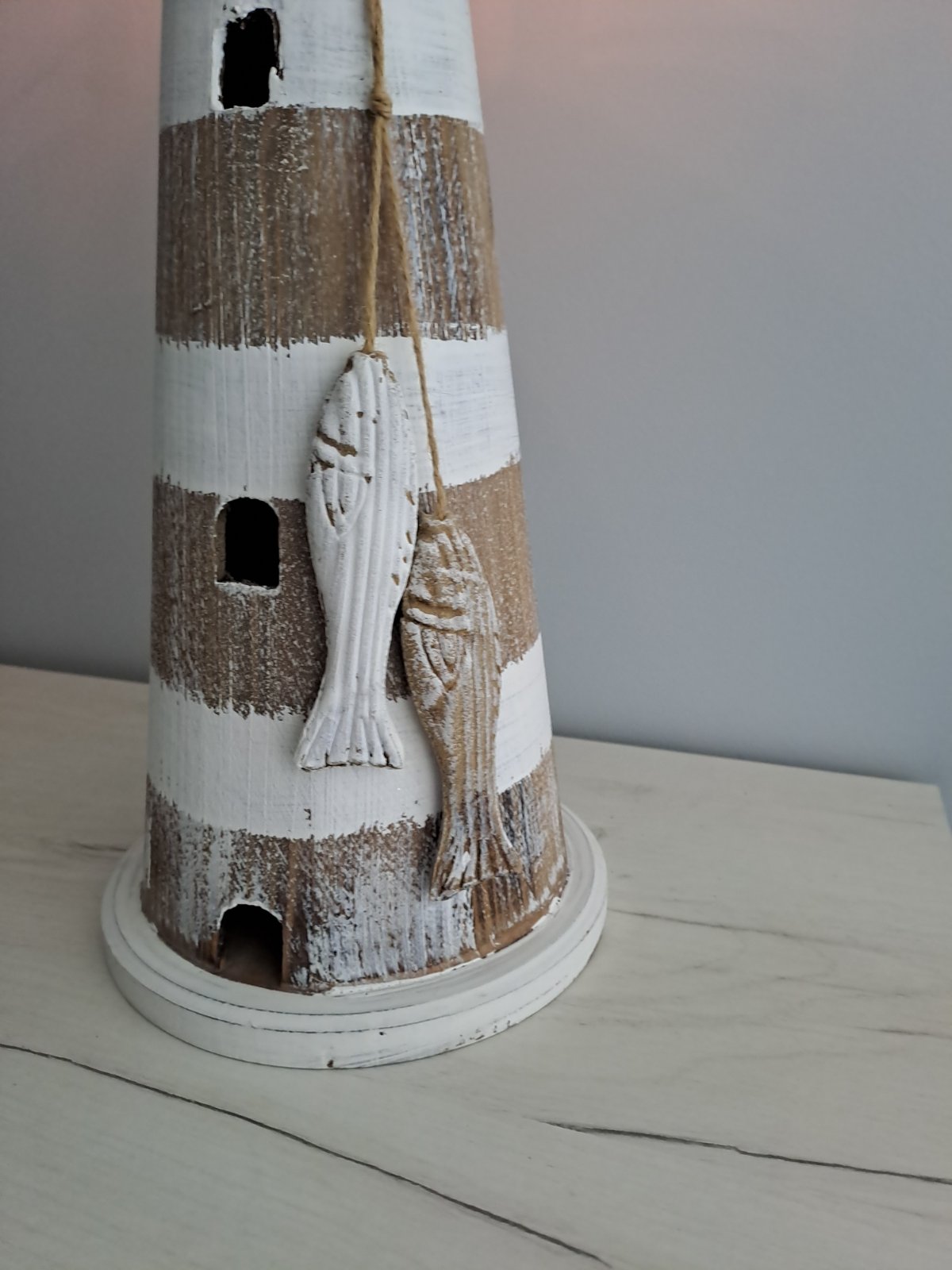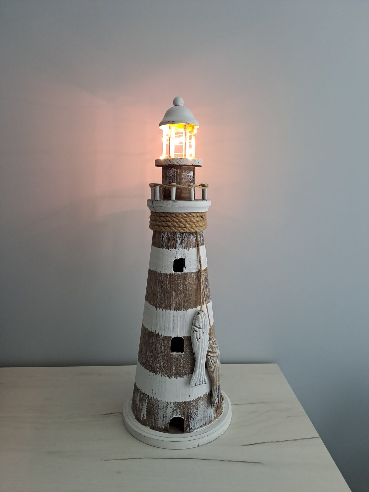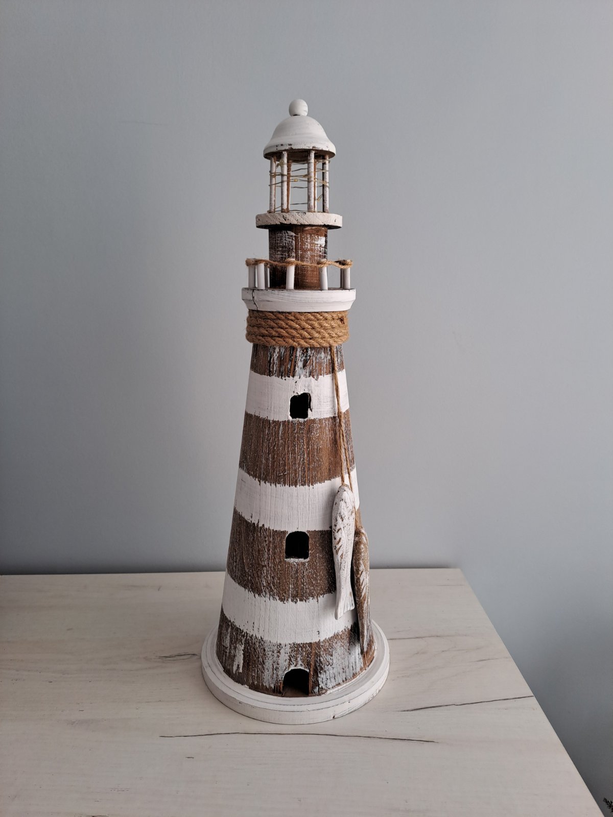 Drevený maják námornícky. Výška 50 cm. Bez poškodení.