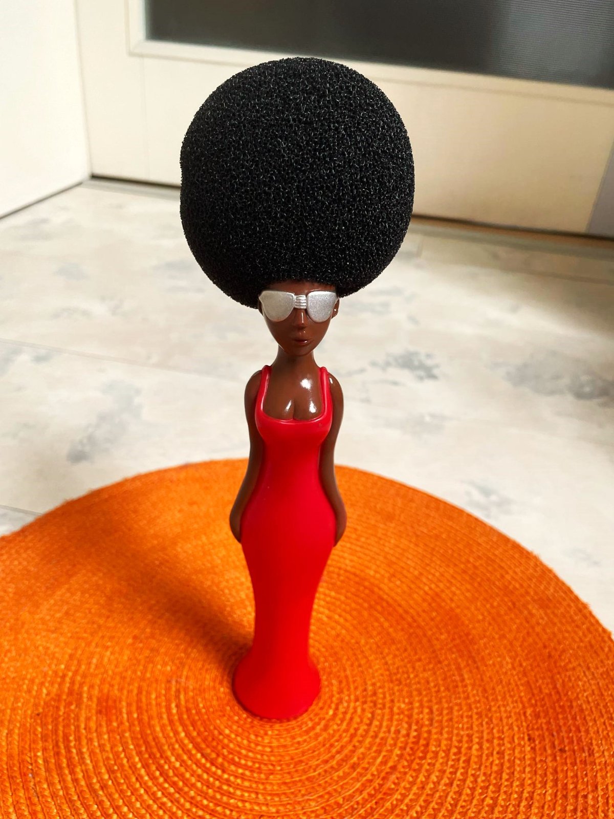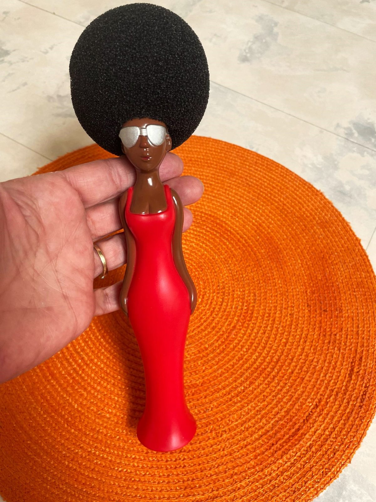 soška - figúrka černošky,hlava je z materiálu - ako jemná špongia,telo z plastu,výška = 26 cm, šítka hlava = 8 cm, driek = 5 cm,krásny doplnok do etno interiéru