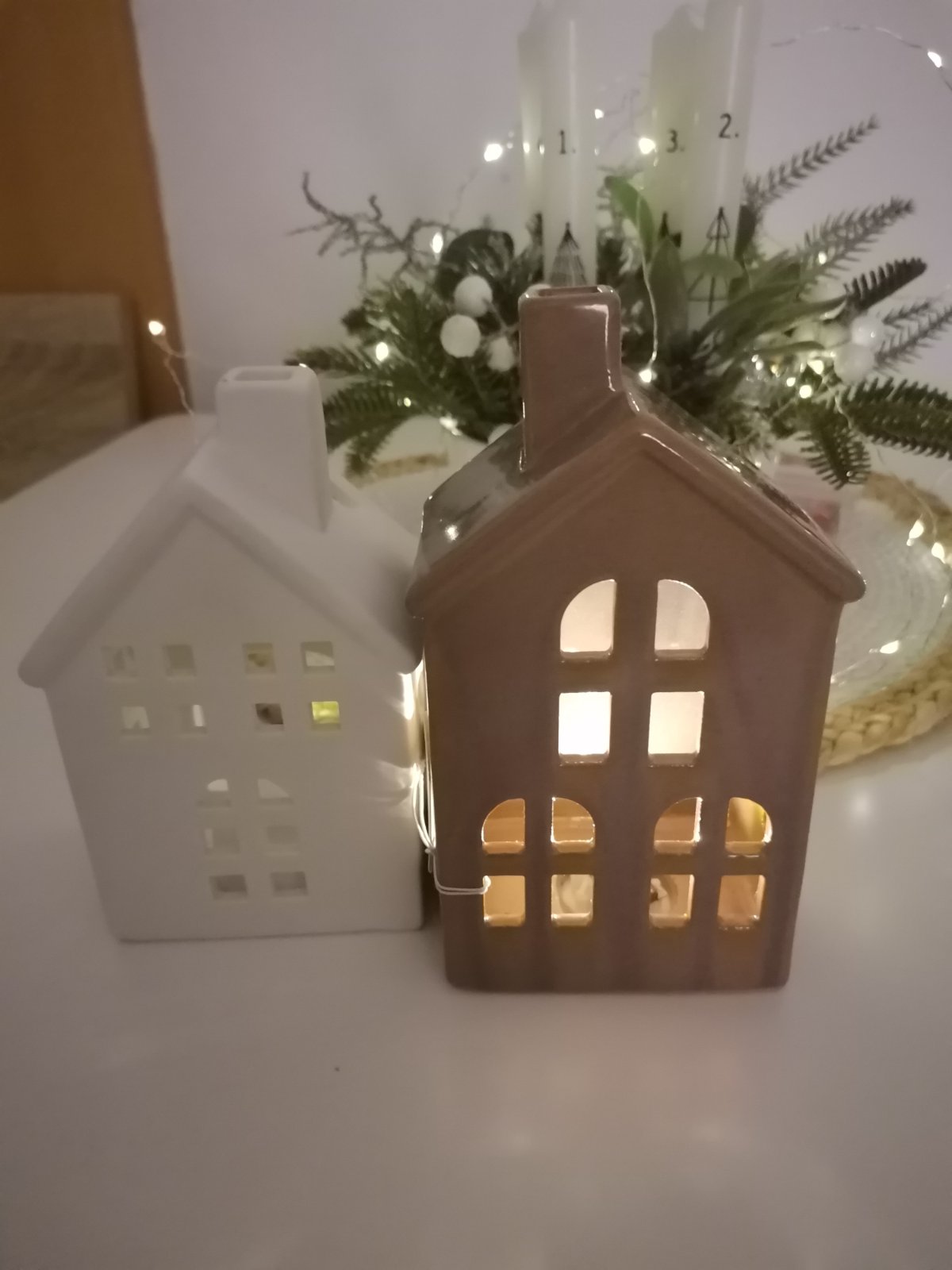 Predám hnedy domček, svieti príjemnym teplym žltym svetlom, biely pošlem ako darček+pošta alebo osobné vyzdvihnutie v Nitre