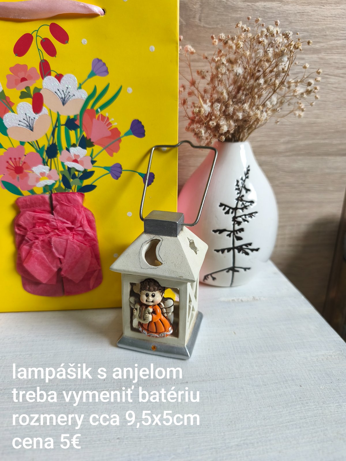 Malý lampáš s anjelom, treba vymeniť batériu.