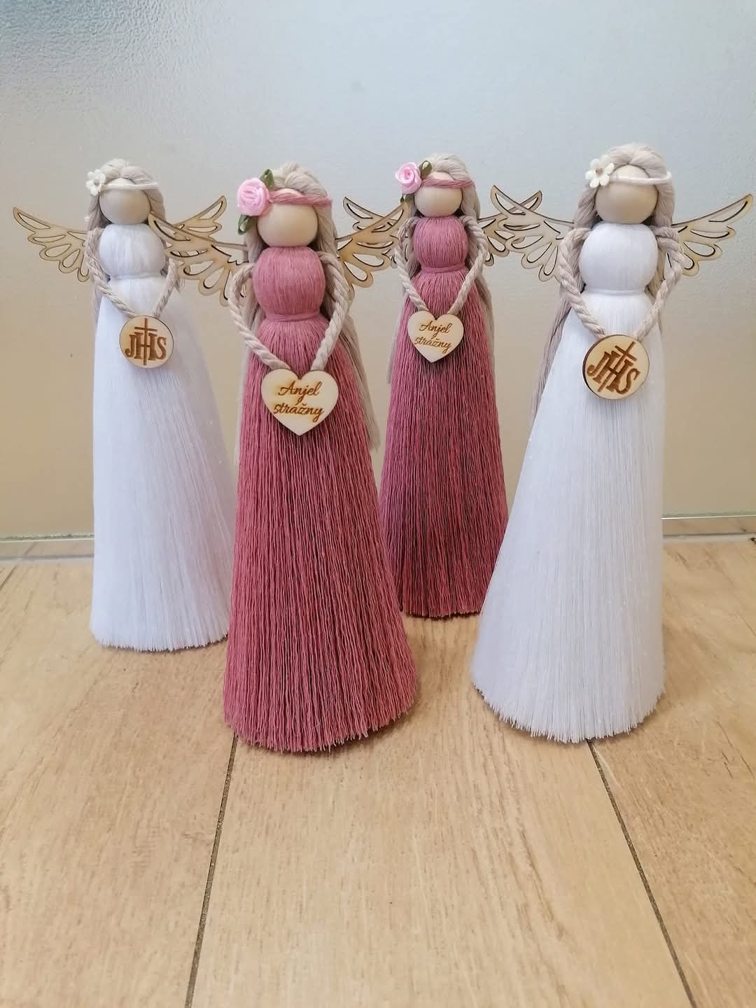 Macrame anjel na stojane, vhodný ako darček k prijímaniu, narodeninám, mamičke atď... Balený v darčekovej krabičke.