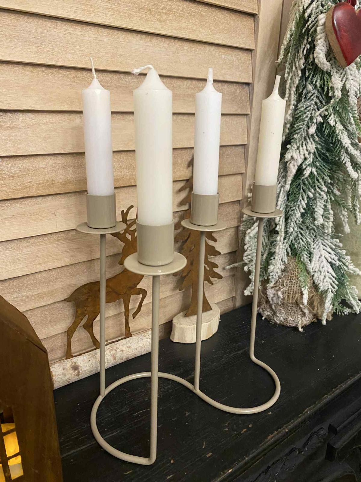 Kovový svietnik na 4 vysoké sviečky - sivohnedý