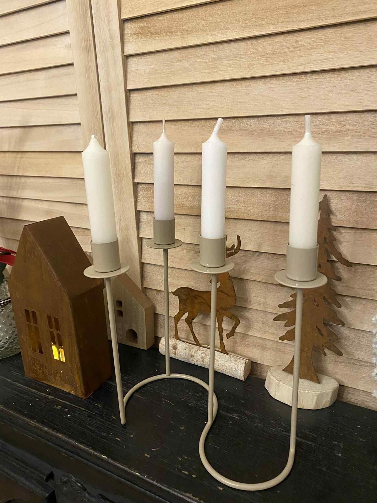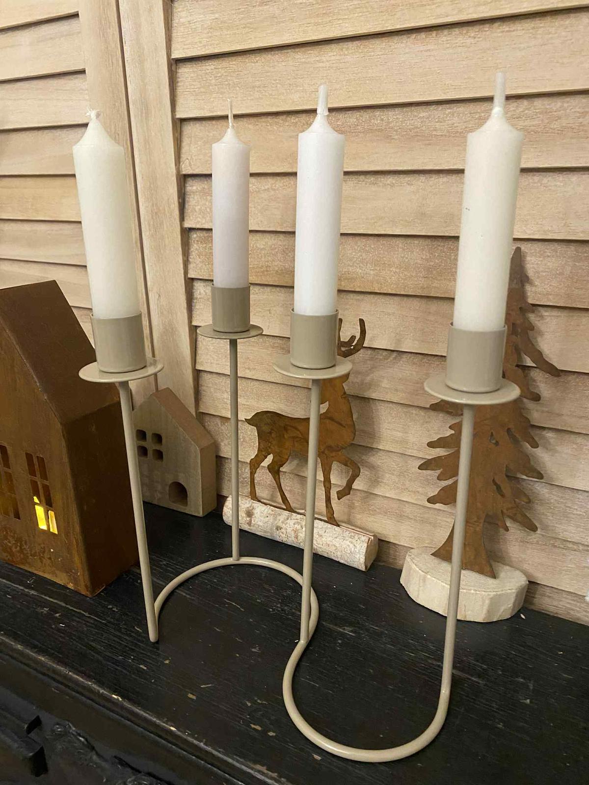 Predám štýlový svietnik na 4 vysoké sviečky, pribalím aj olivovo zelené sviečky 4 ks