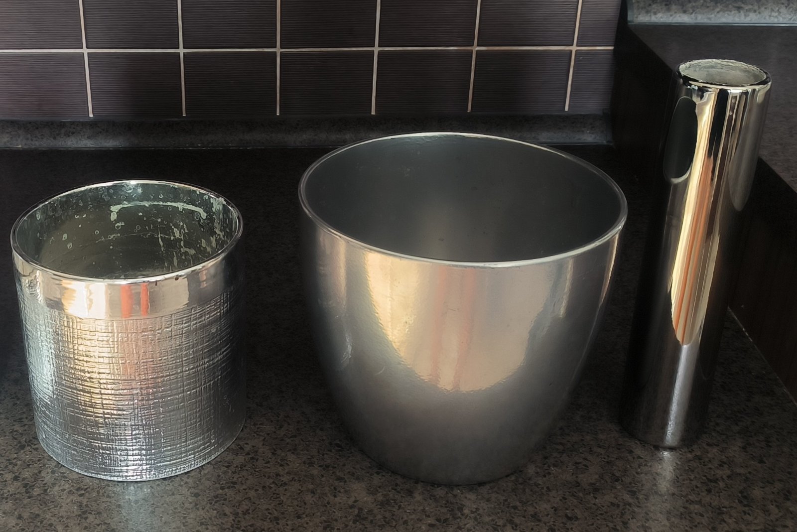 Predám kvetináče, strieborné, keramické/kovové, vo výbornom stave, nepoškodené.