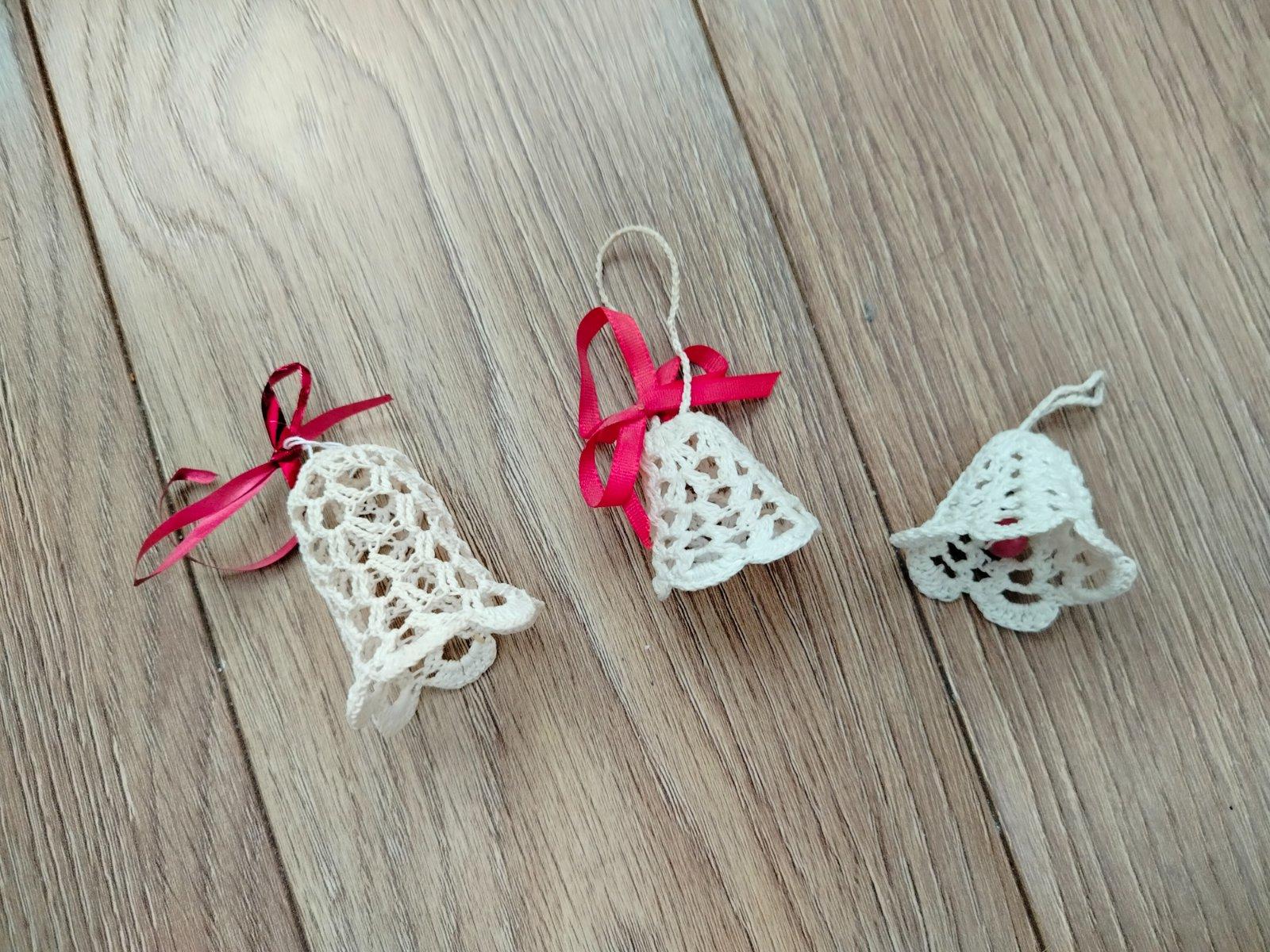 Predám háčkované vianočné ozdoby na stromček - zvončeky, naškrobene so šnúrkou na zavesenie