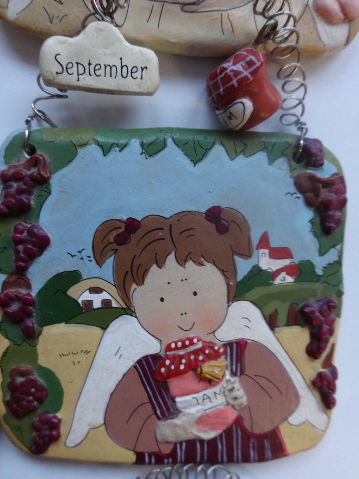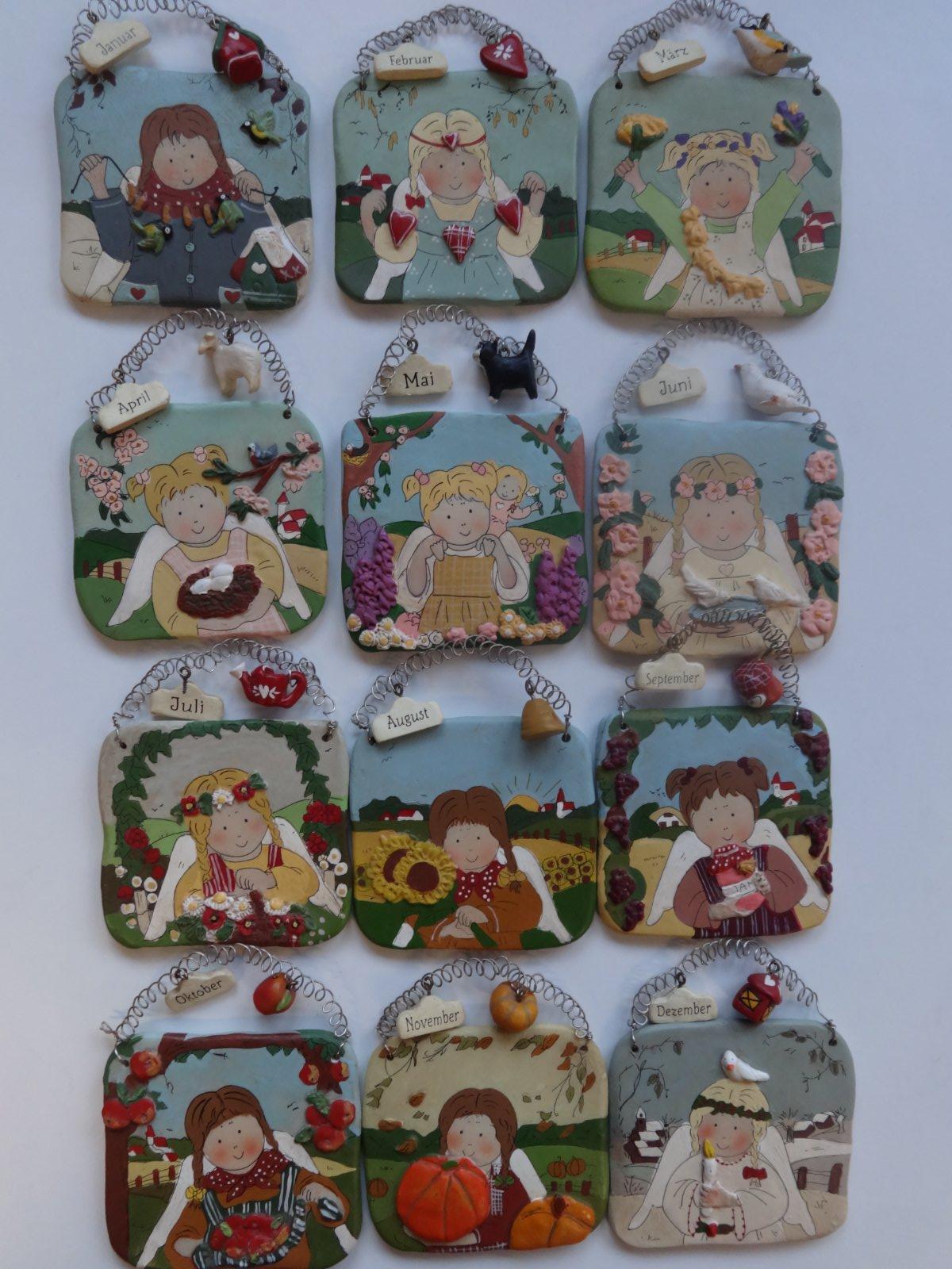Vo výbornom stave, anjel mesiaca od Anneka Bouke (nie moja vlastná výroba), ručne maľovaná platnička, cca 7,5 x7 cm veľká, na zavesenie, každý anjelik typický pre mesiac (napr. narodenia) v roku, symbol + názov mesiaca na kovovom závese , zadná strana s priestorom na venovanie, každý kus za 12,00, pri odbere 12tich mesačných anjelikov za 120,00