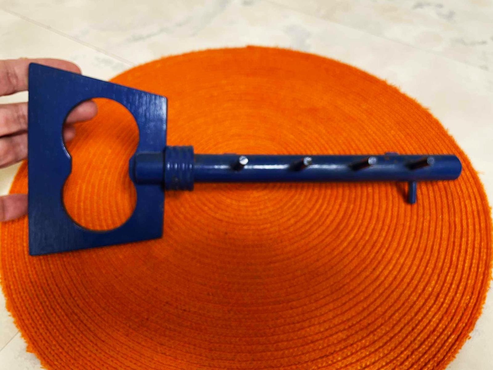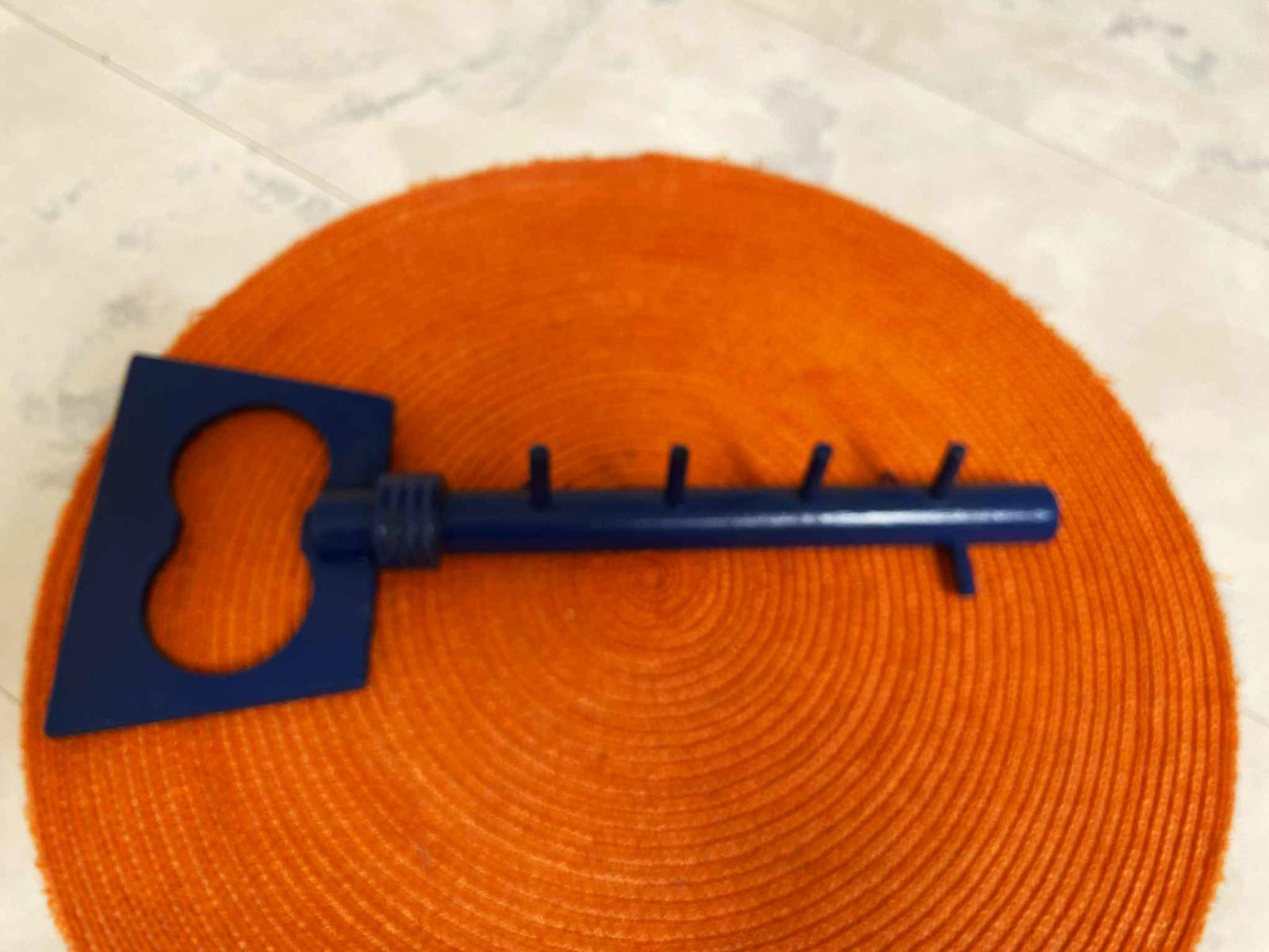 drevený používaný vešiak na kľúče,od kľúčov trocha oškretá farba - viď foto,ale dá sa pekne prestriekať sprayovou farbou alebo natrieť aj na inú farbu,dlžka = 29 cm,najširšia časť 12 cm, valček na kľúče = 2 cm