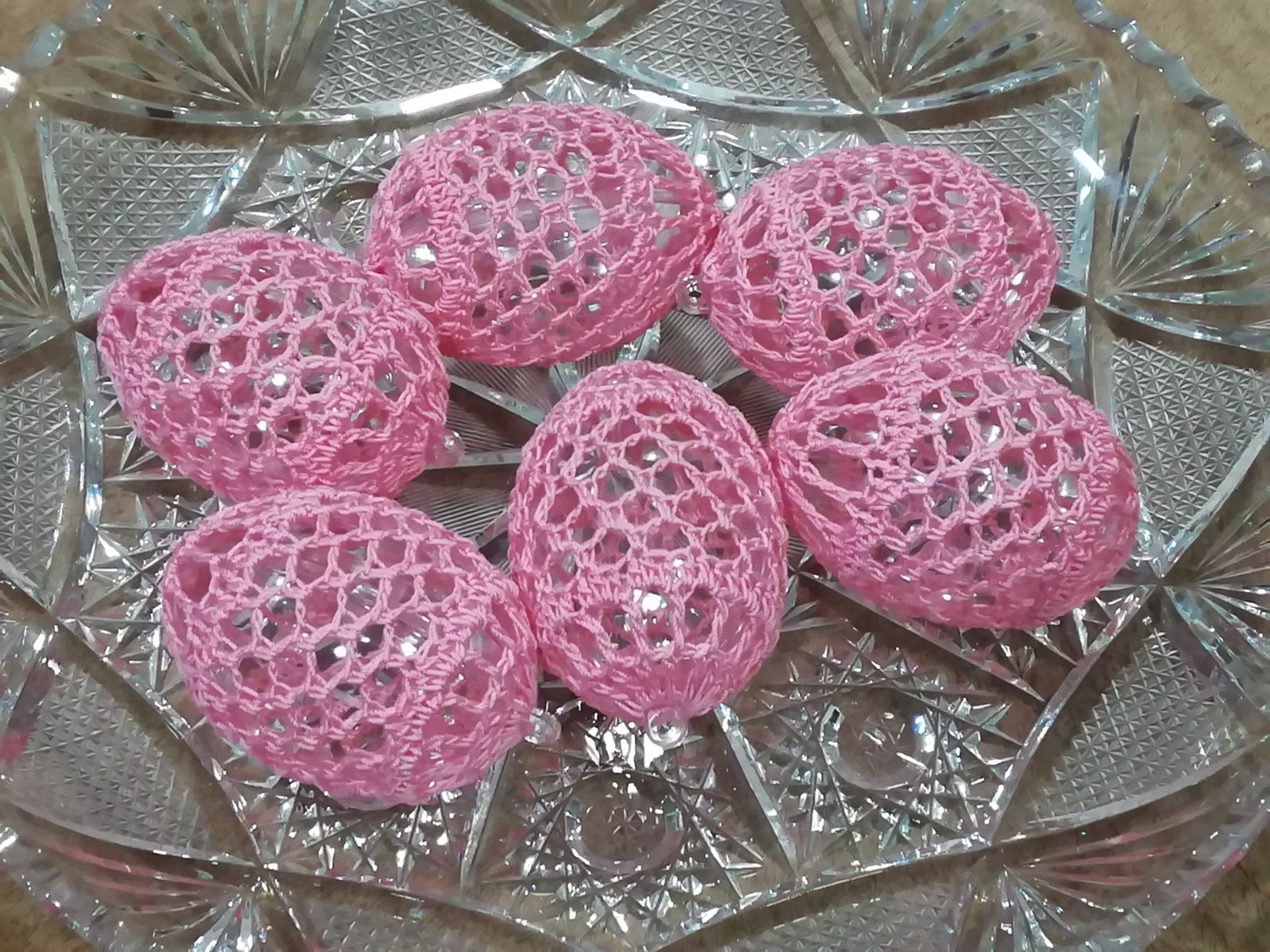 Háčkované na plastovom vajíčku.