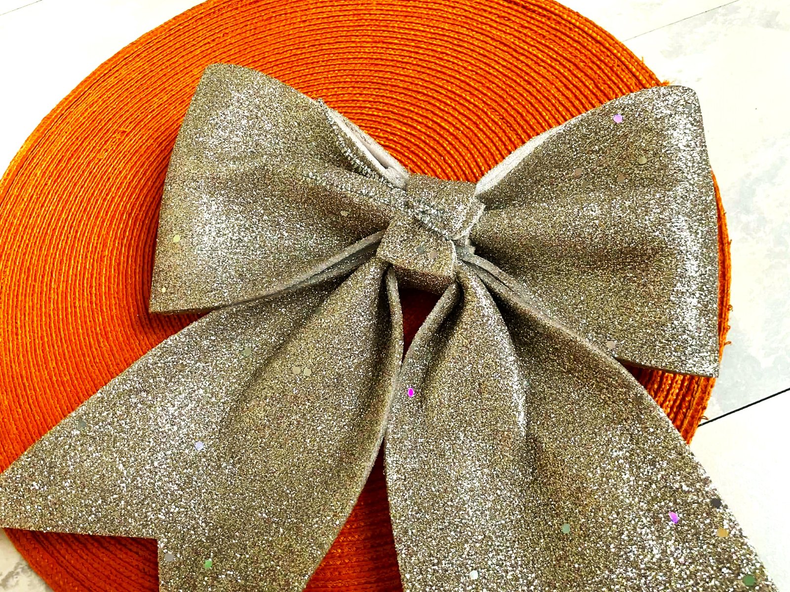 trblietavá masívna mašľa, použitá na 1 Vianoce,top stav,cca šírka 25 x dlžka 30 cm, vhodná ako ozdoba na vrcholec vianočného stromčeka,ale i ako ozdoba na dvere a pod