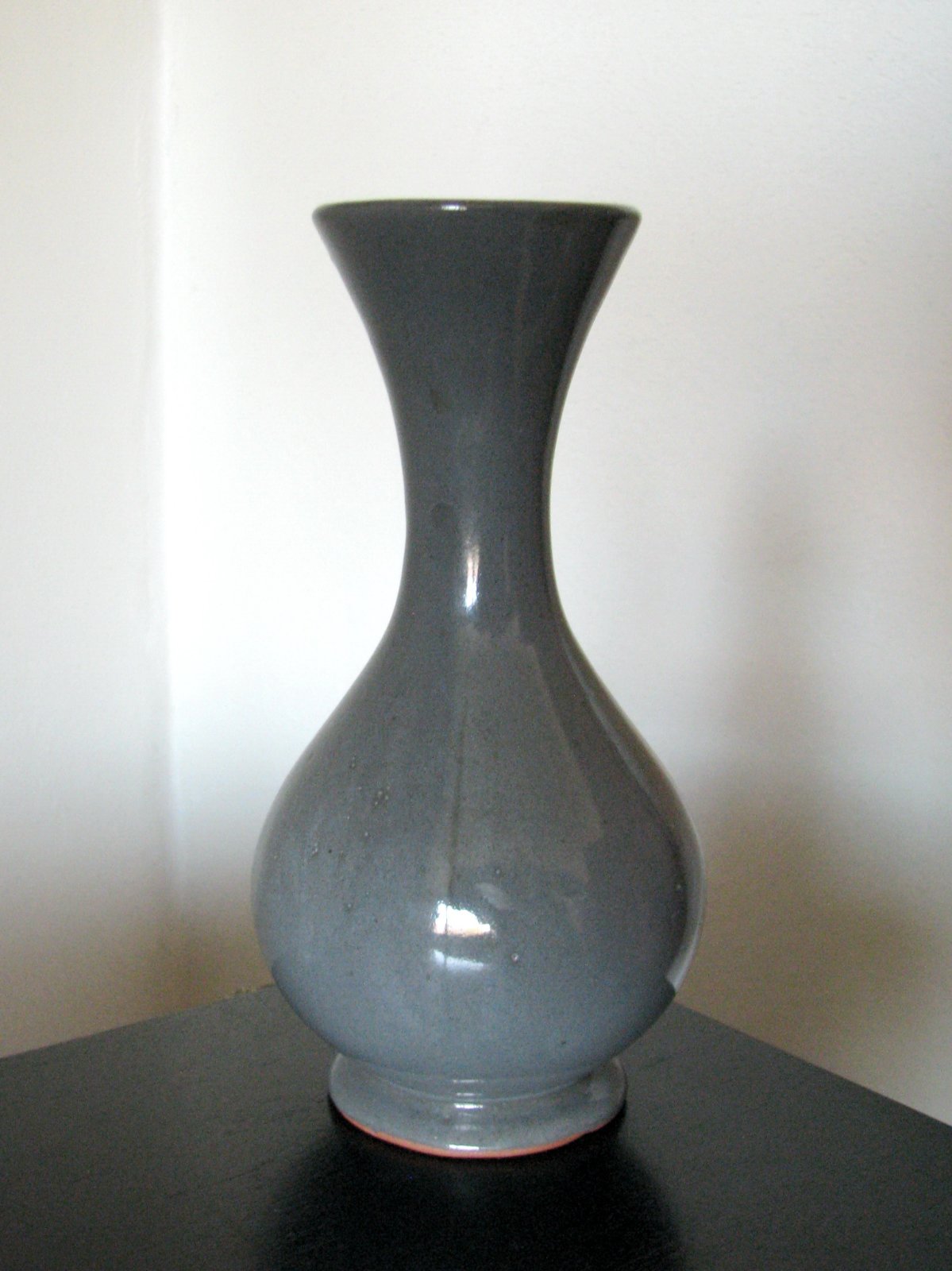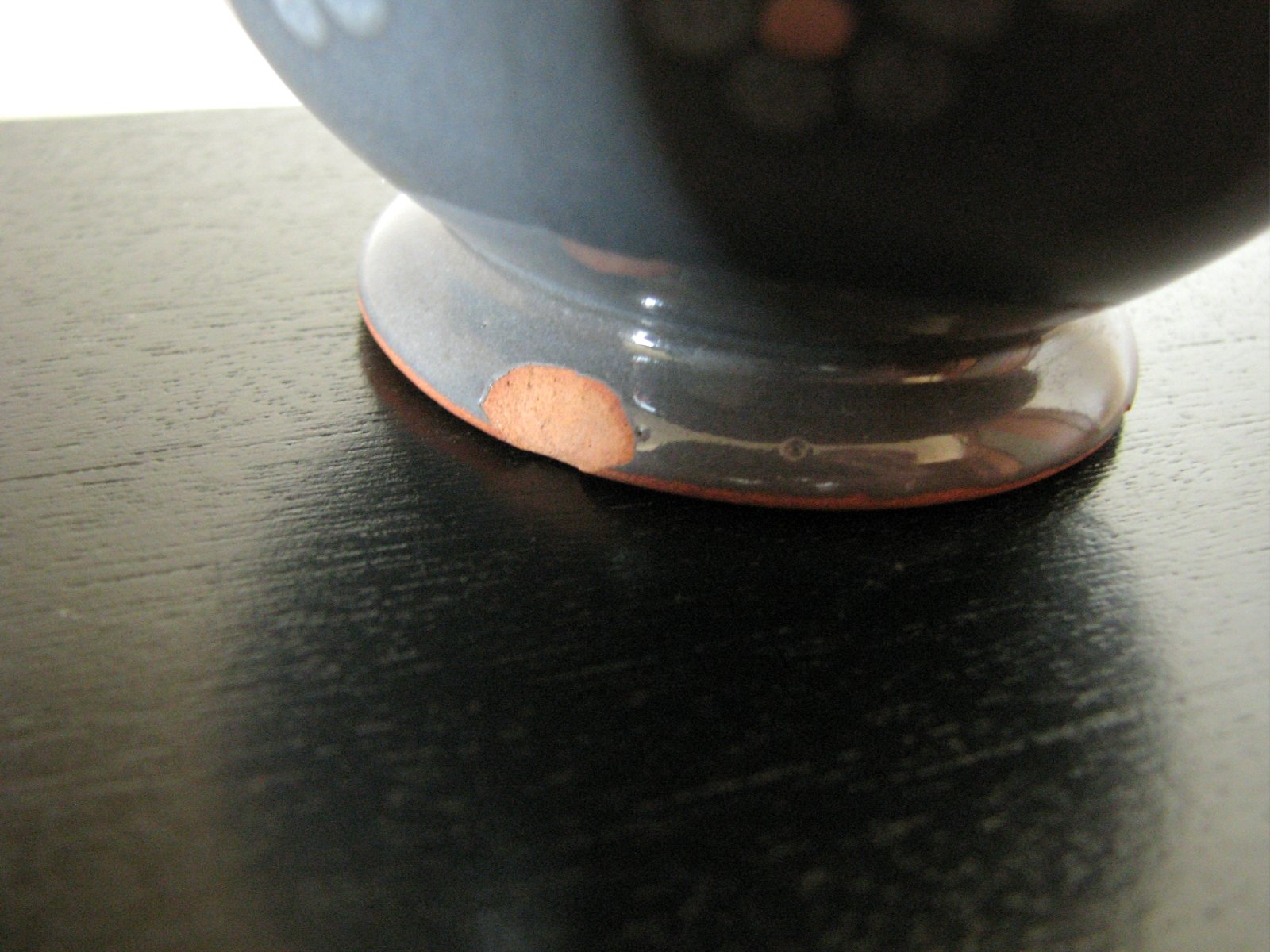 Keramická glazovaná váza šedej farby s dekorom kvietkov, o výške cca 17 cm. Má jeden oťuk, viď. foto. Iné poškodenia nemá.