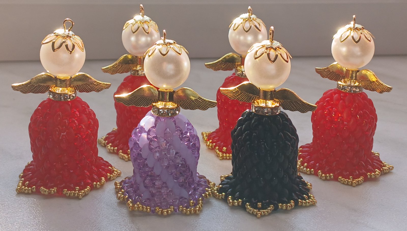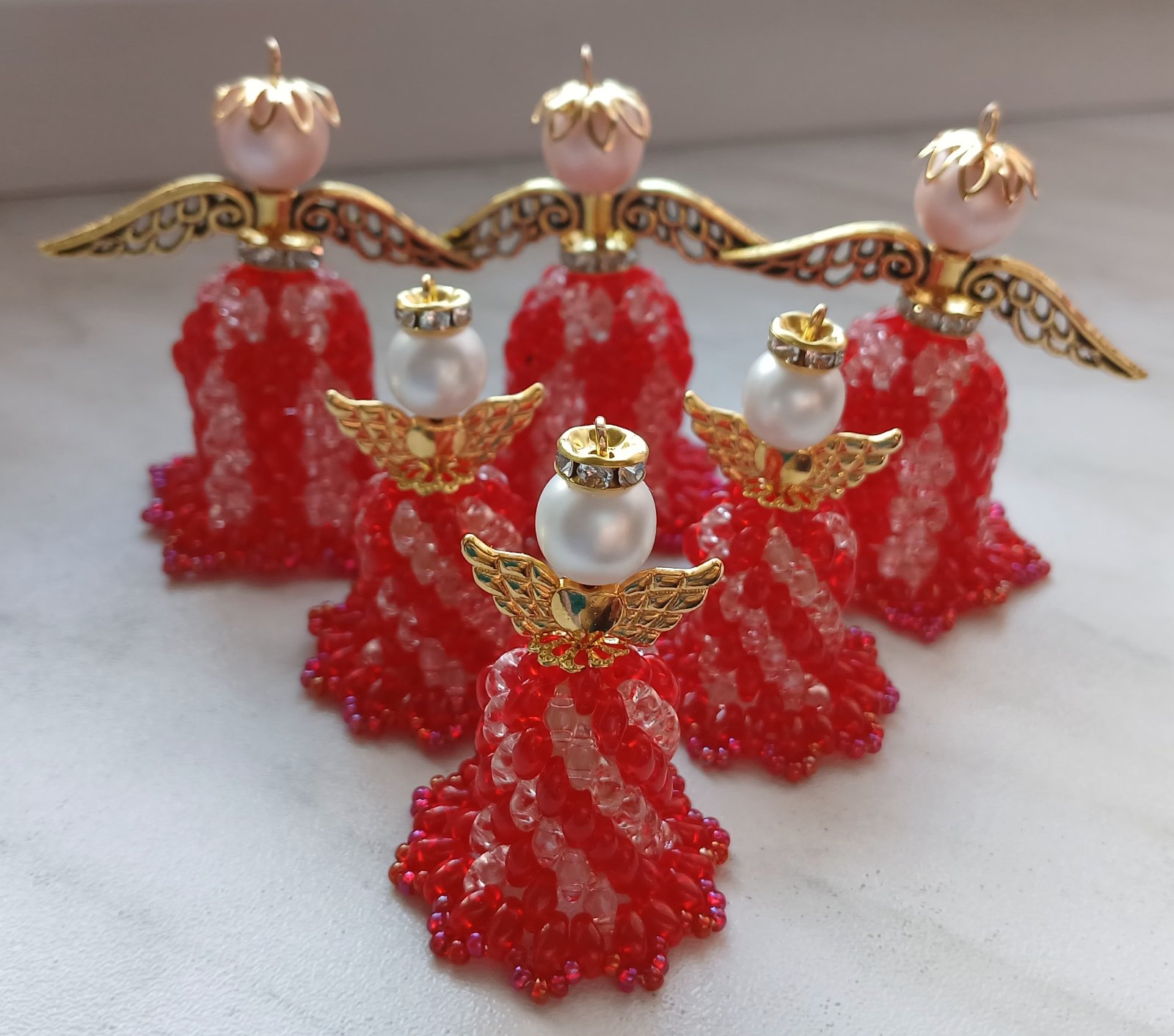 Nádherní sklenení anjelici 😇 z českých korálok, každý z 245 kusov. Kovové časti sú z chirurgickej ocele, krídla z bižutérneho kovu a hlavička z voskovanej perly. Vhodné ako darček pre šťastie, do dekorácie, alebo len tak na stôl ako anjel strážny.