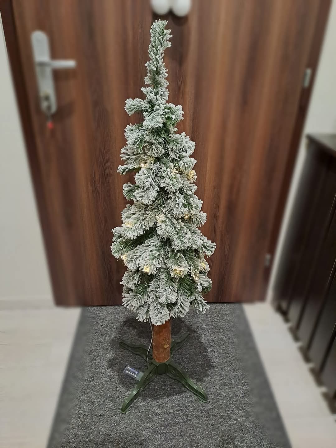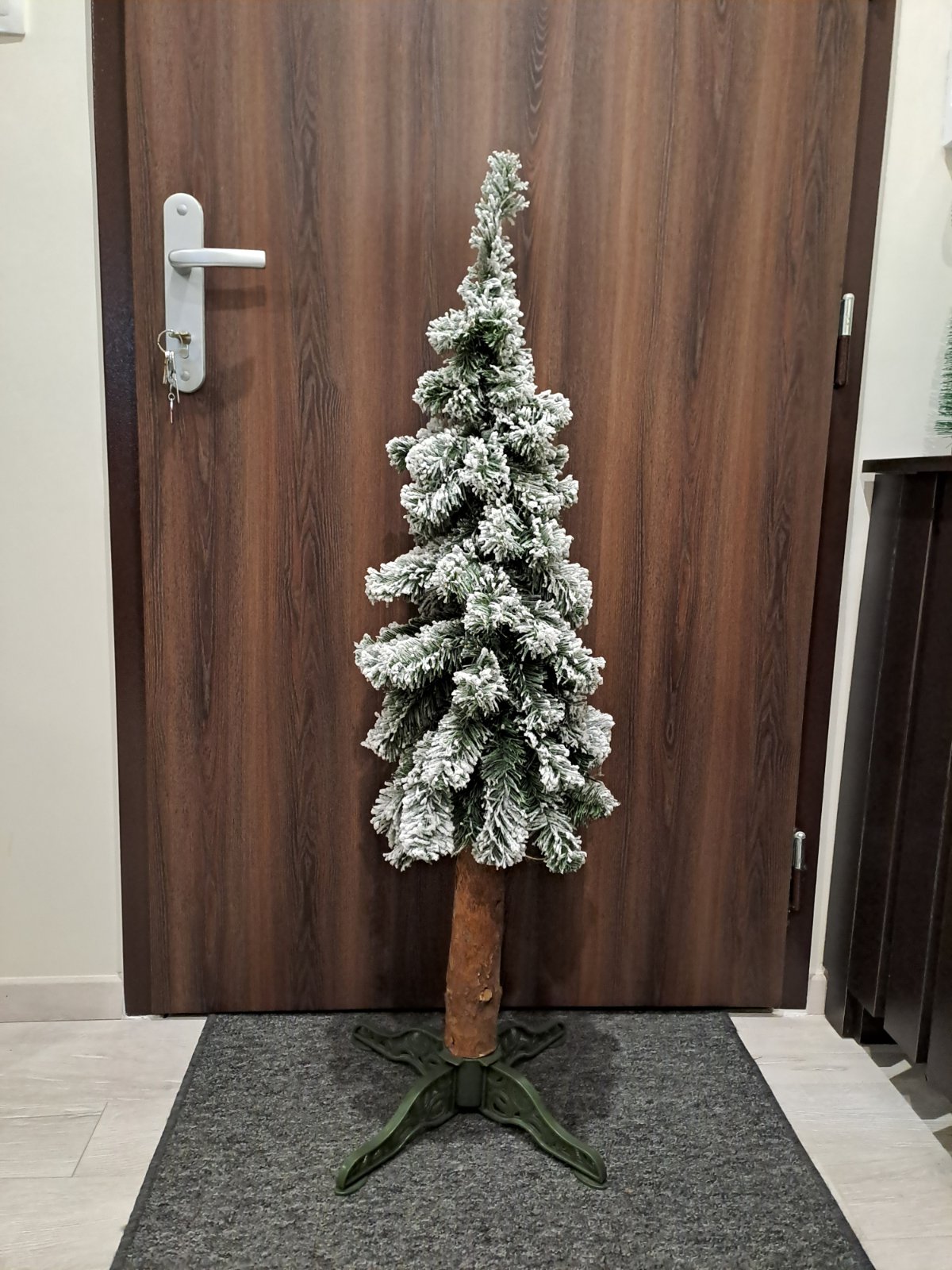 Vianočný stromček zasnežený na pníku. Cena + poštovné ako balík.