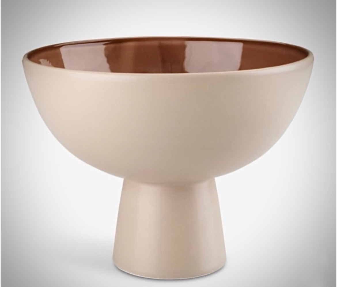Béžová a terakotová miska vyrobená z dolomitu. Táto dekorácia do domácnosti sa vyznačuje hladkým vonkajším povrchom s lesklým interiérom. Štýlový prvok na servírovanie ovocia či drobný aranžmán.