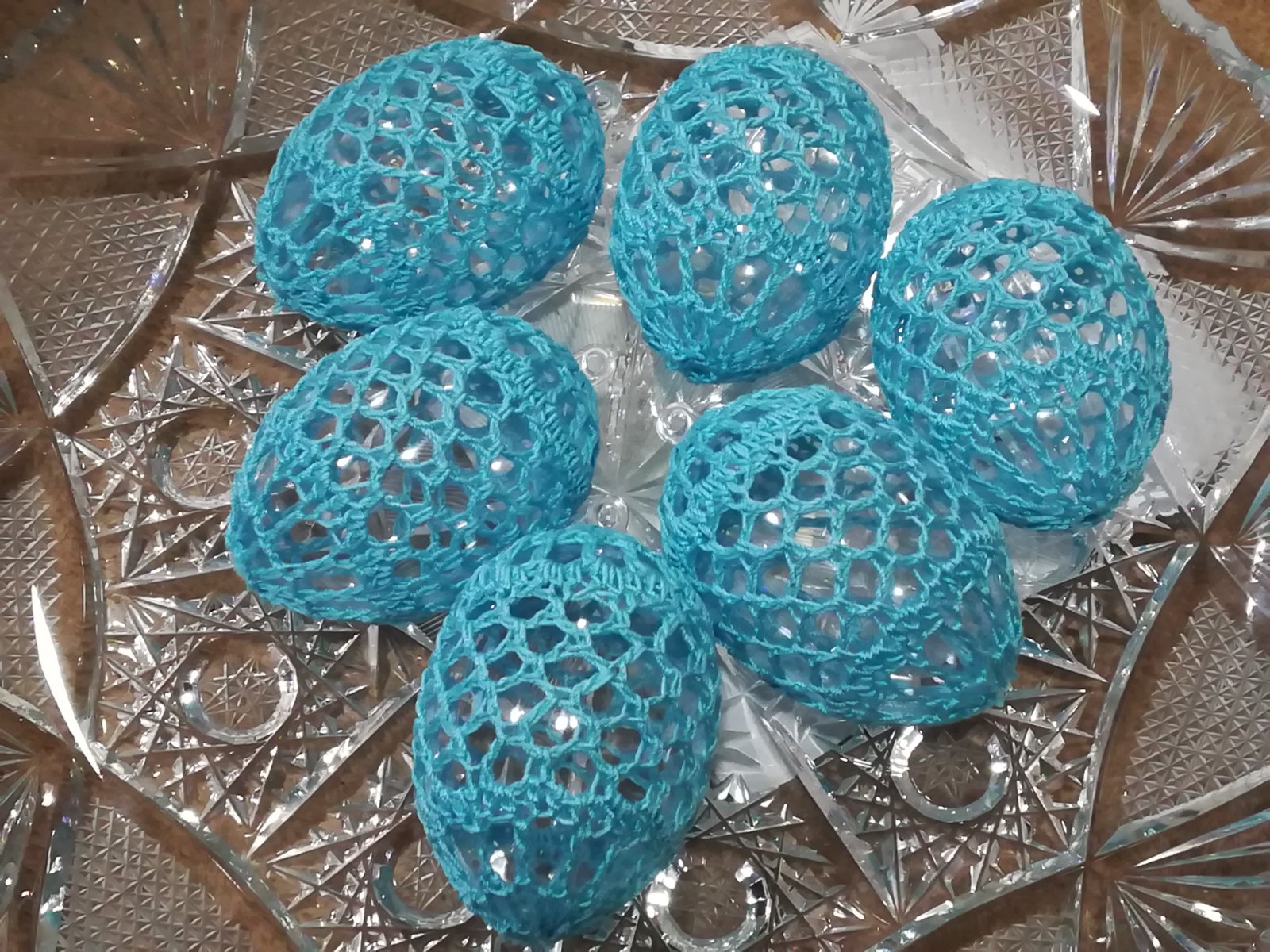Háčkované na plastovom vajíčku.