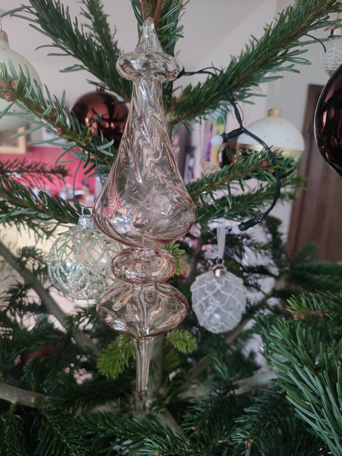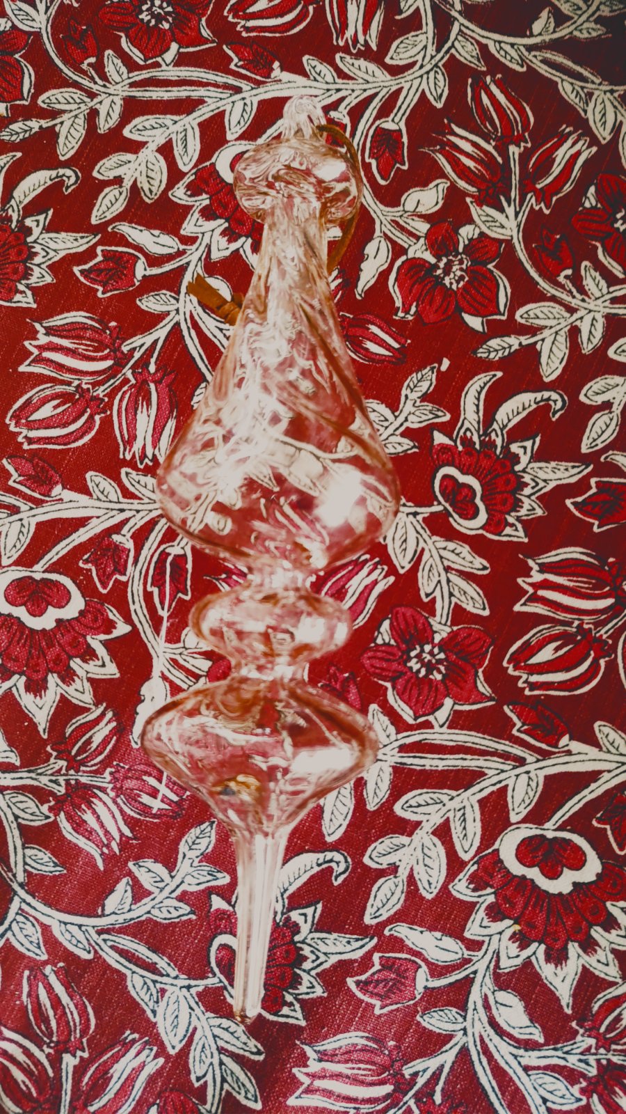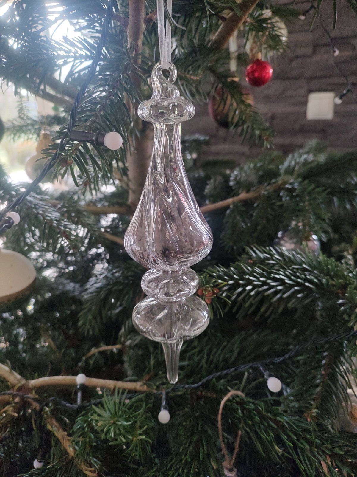 Výška cca.20 cm.krasna.ručna práca . Jedna je akoby taká slabo dohneda sklo a jedna číra
