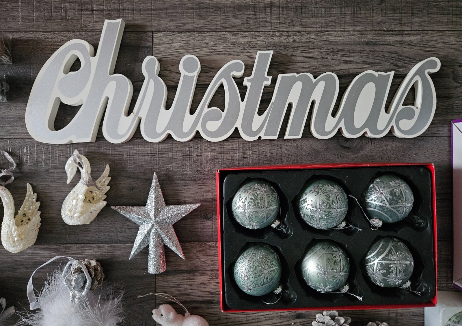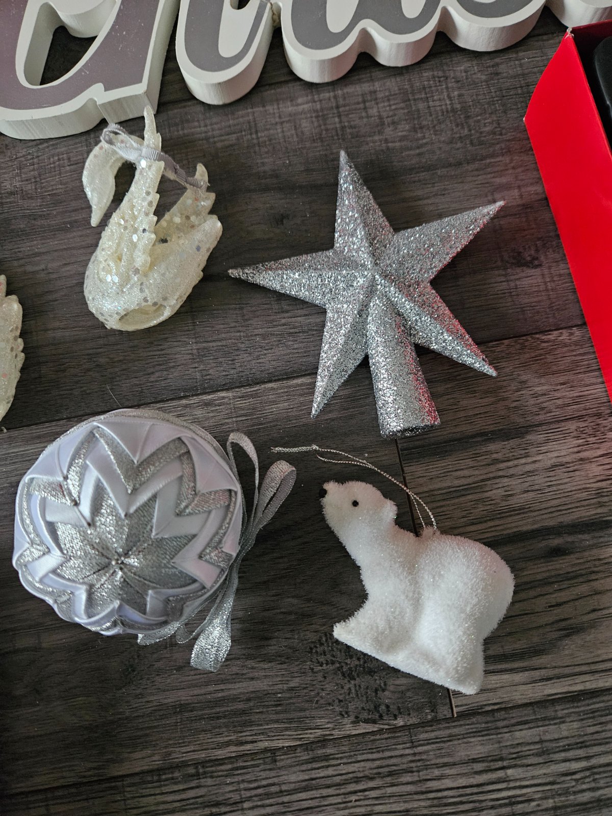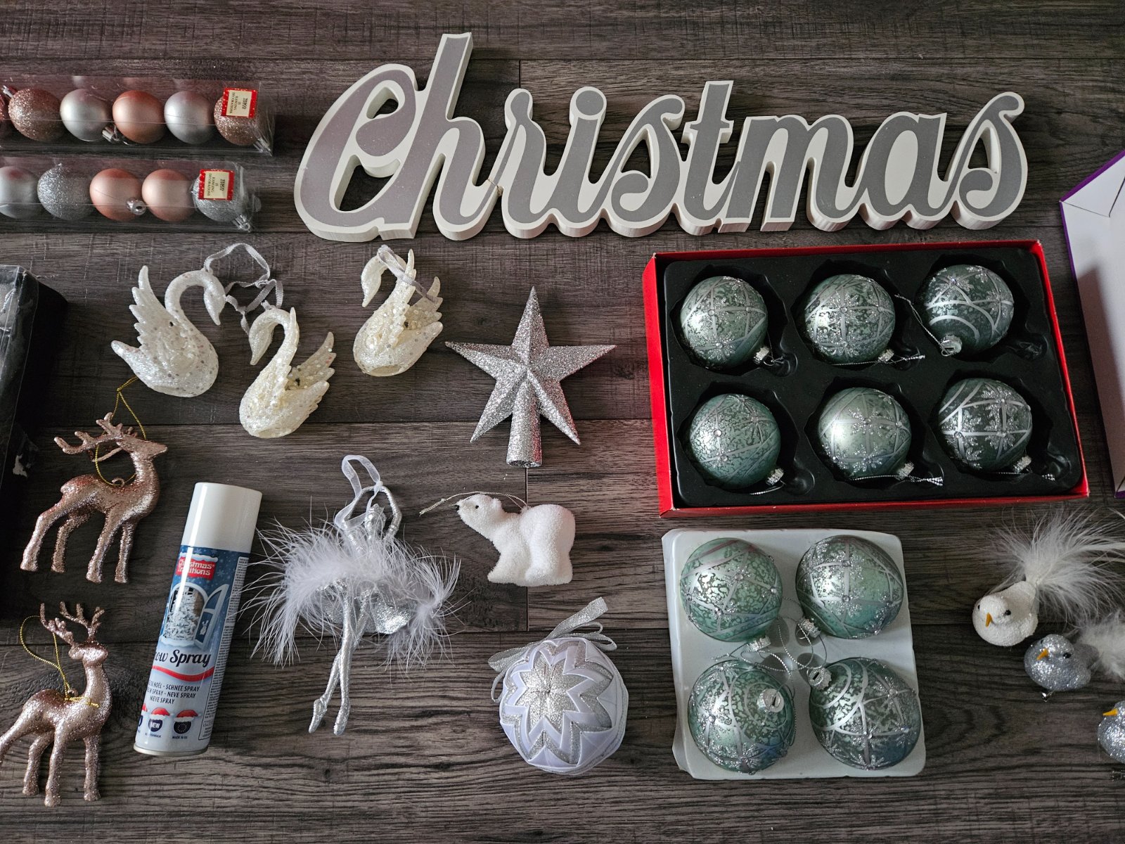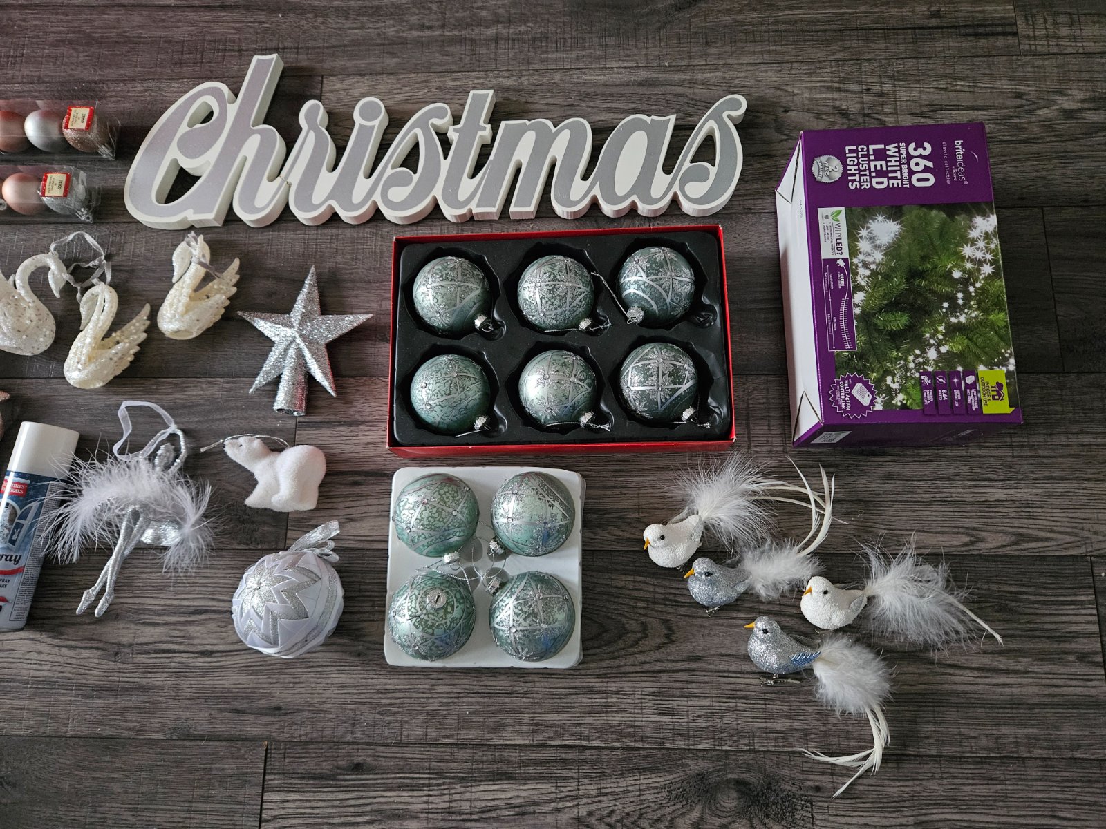 Ozdoby na stromček- biele Vianoce- gule, svetielka
