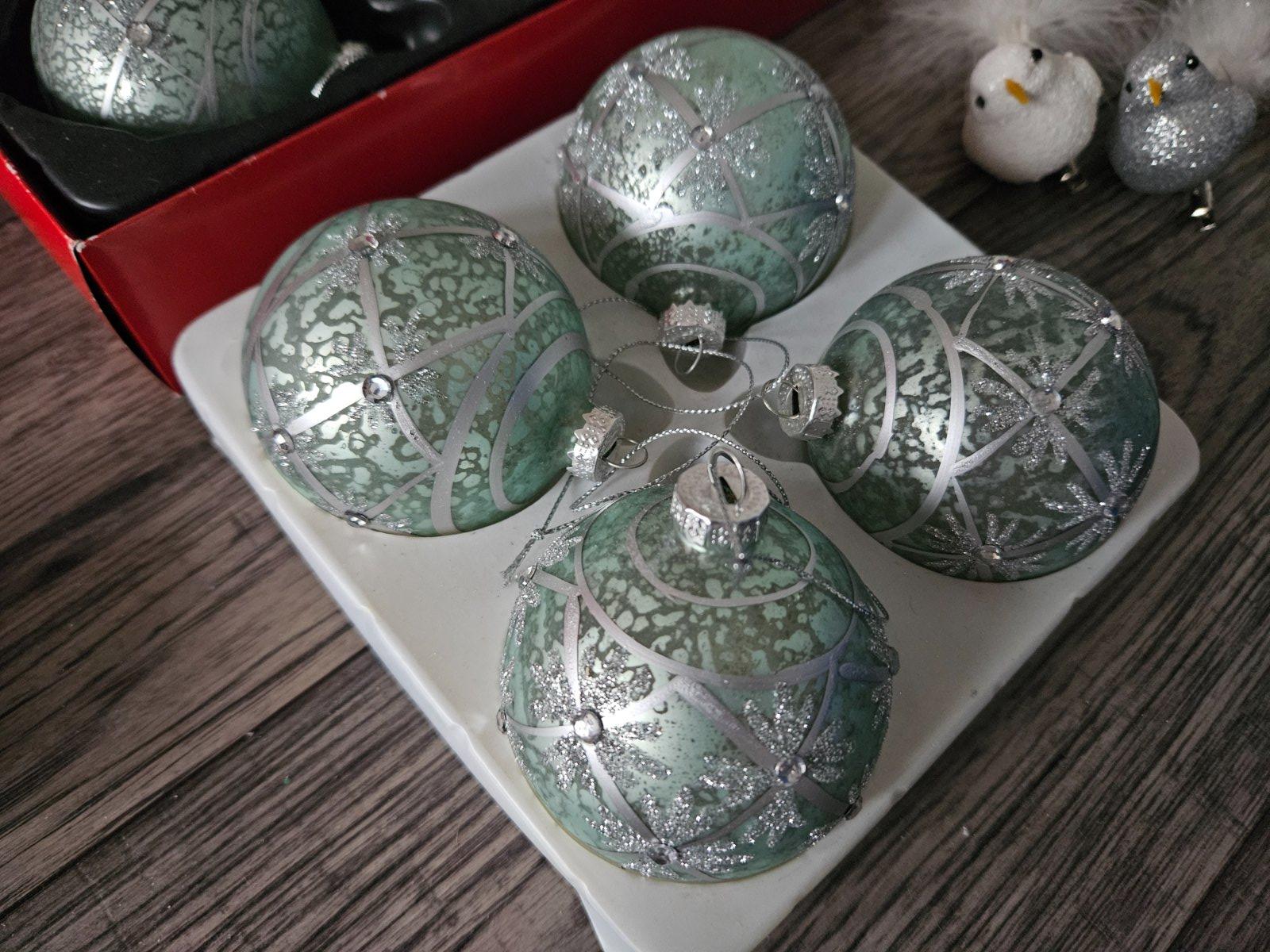 Krásne zdobené sklenené gule duck egg farba 7cm 50€ za 10 gulí