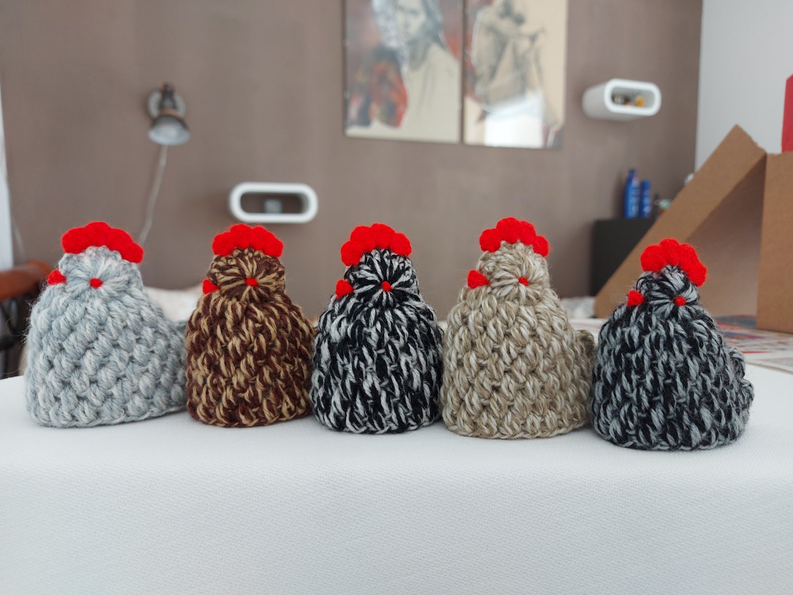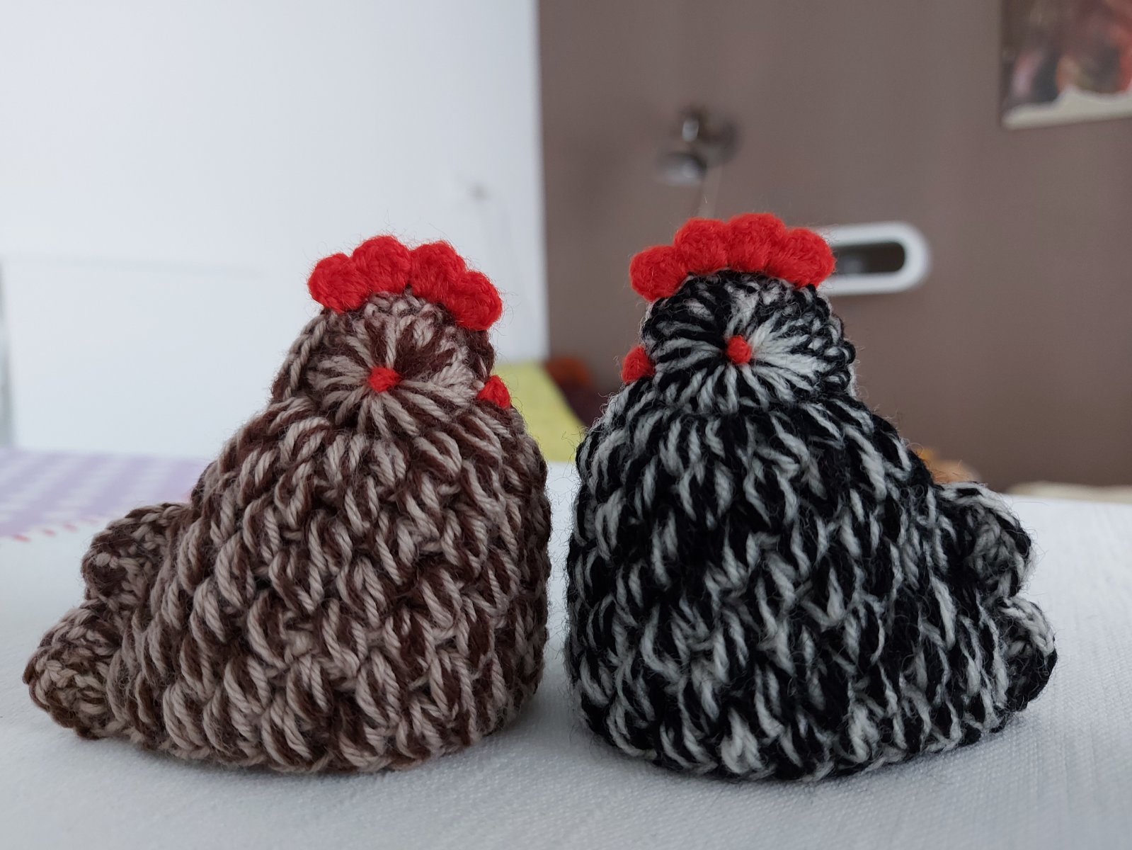 háčkované sliepočky z vlny (výška cca: 8cm) - cena: 2eurá za kus