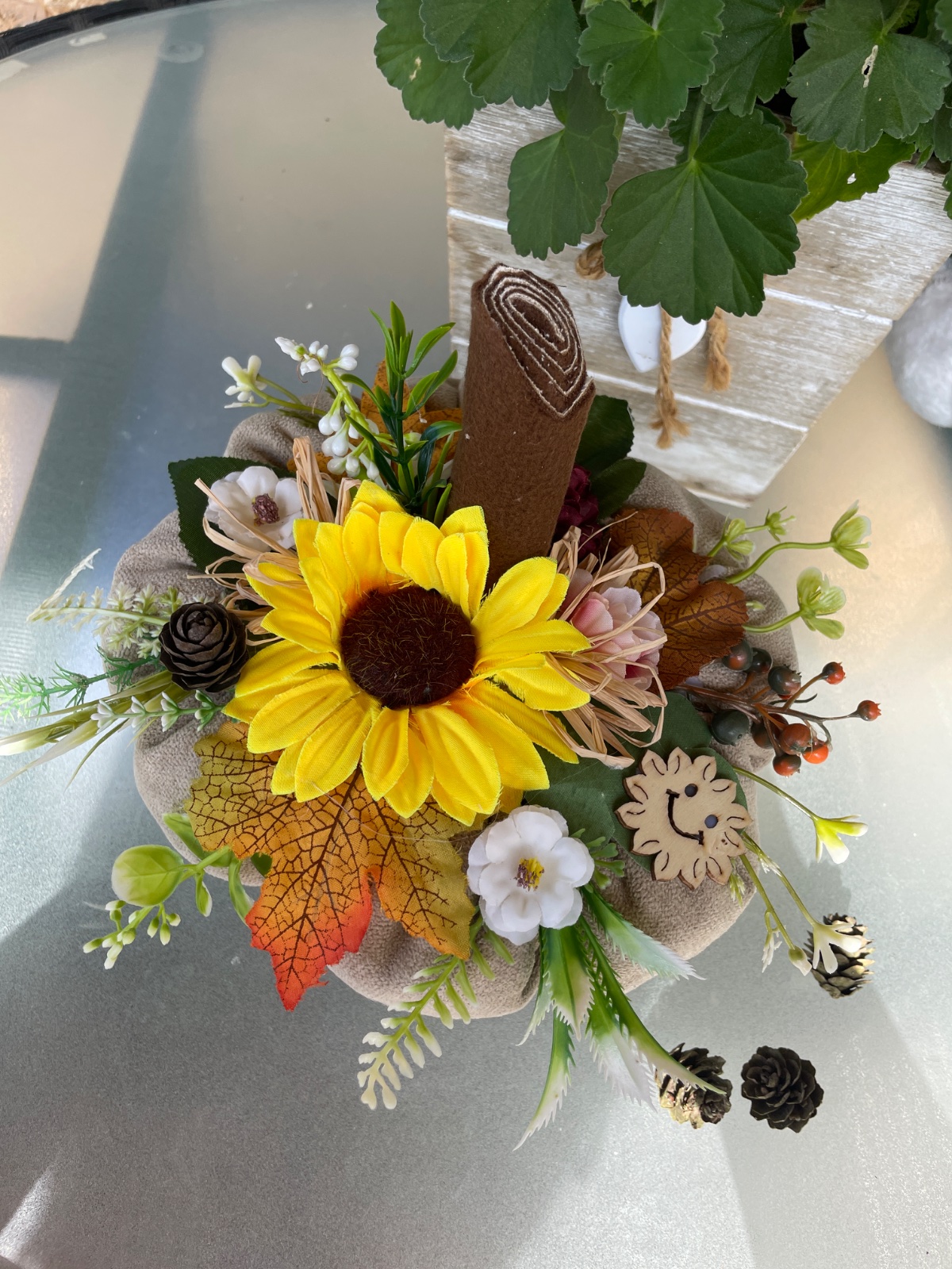 Vazička, dekoračné kamienky, umelé tulipány a slnečnice. U nás nevyužité.