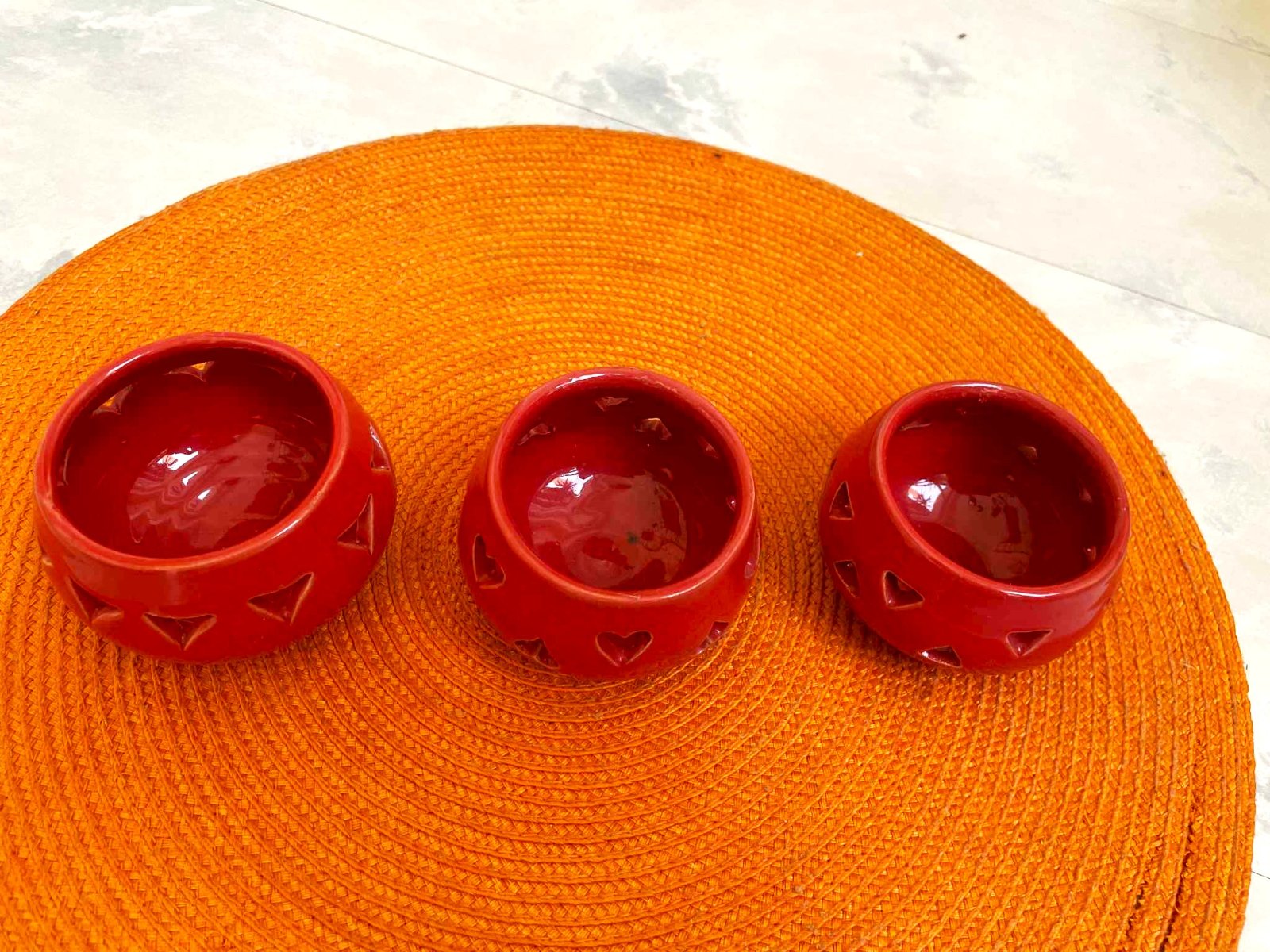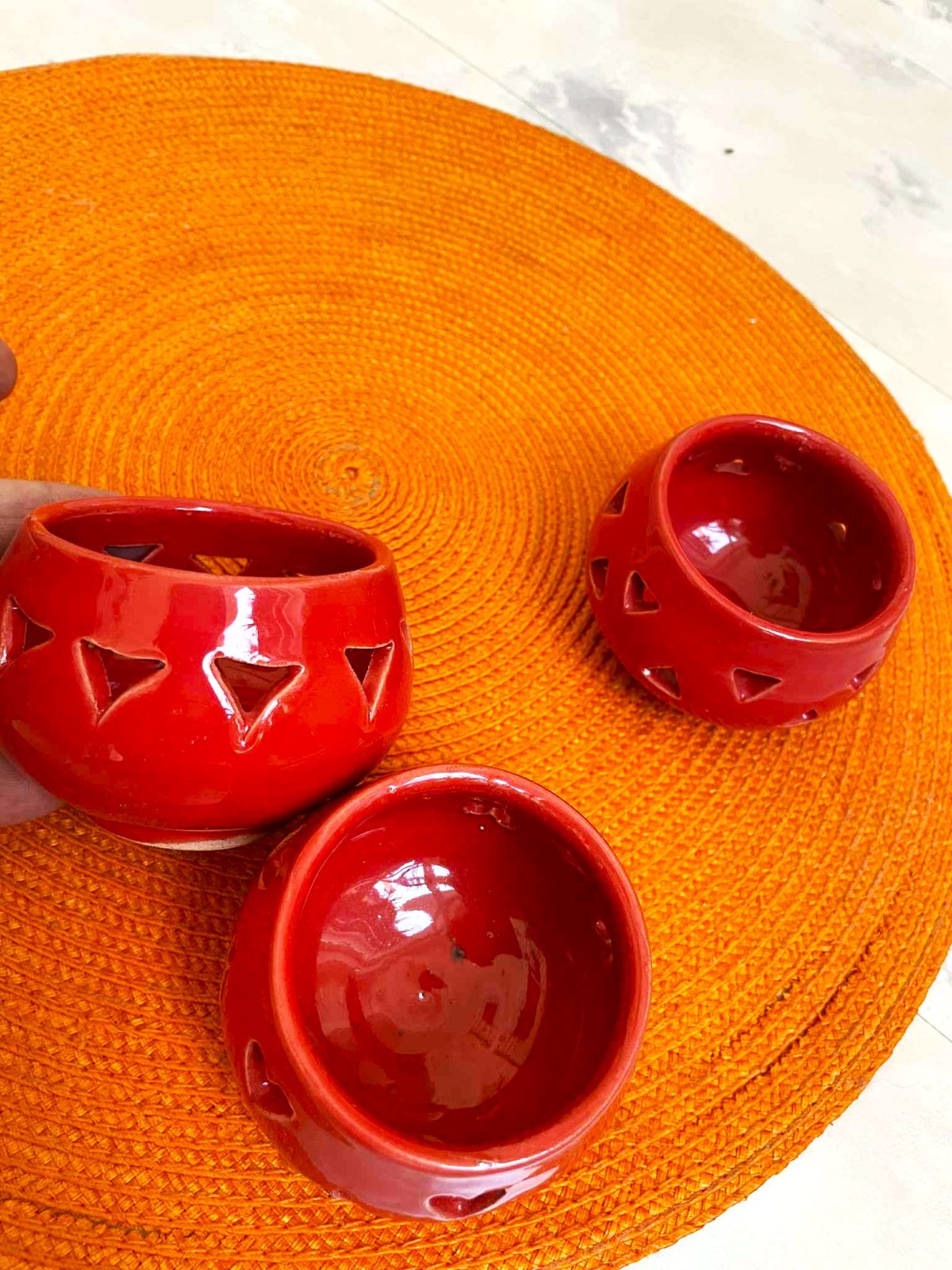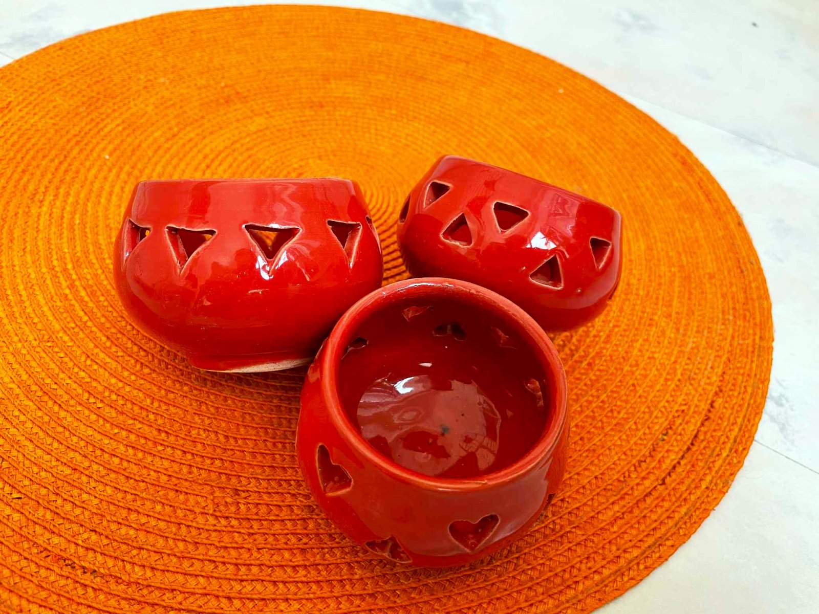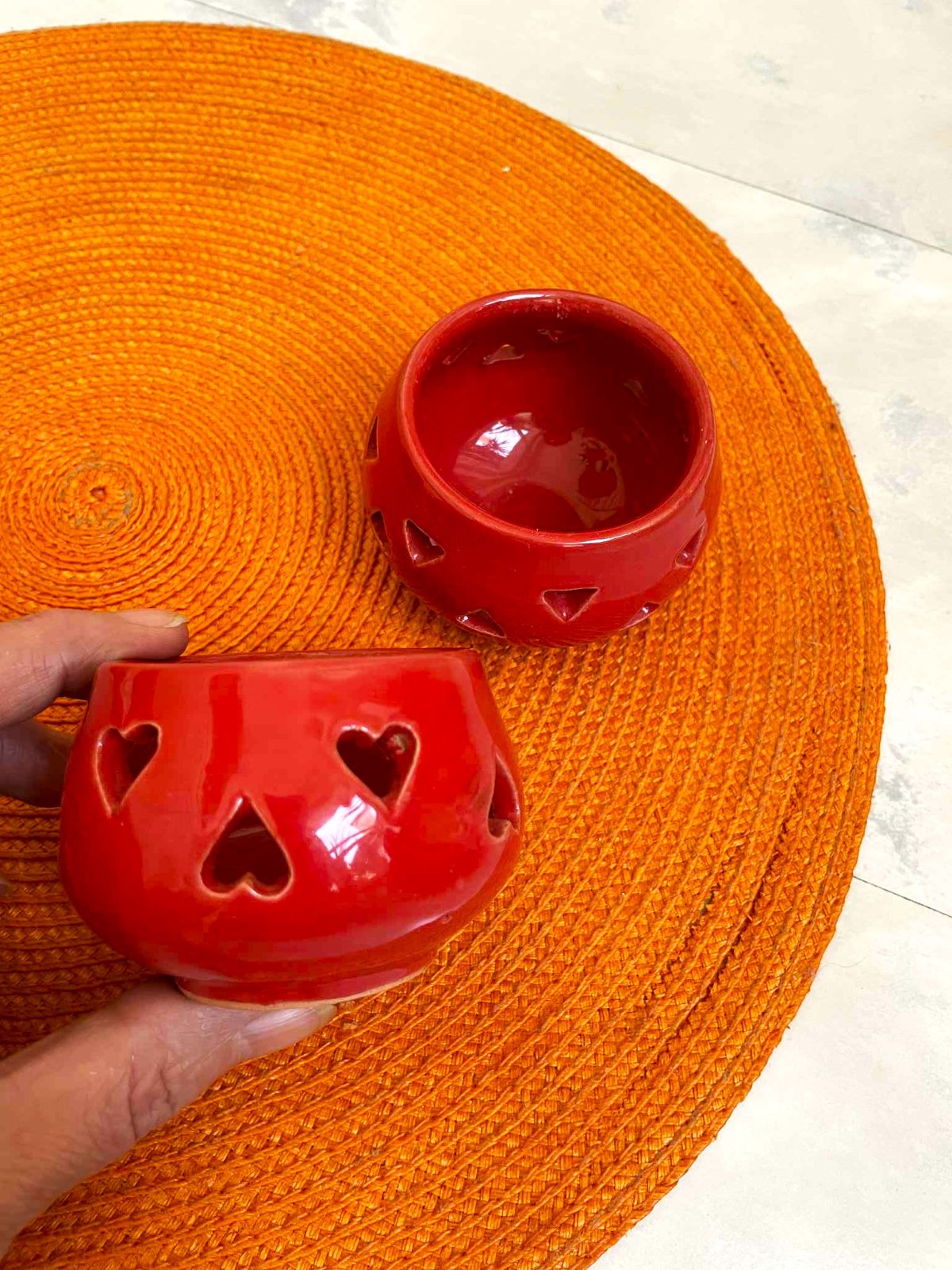 krásné svietničky na čajové sviečky,ručná práca - nie priemyselná výroba,farba ako na obrázku,nie červená,ale terakotová /tehlová,priemer = 8 cm, výška= 6 cm