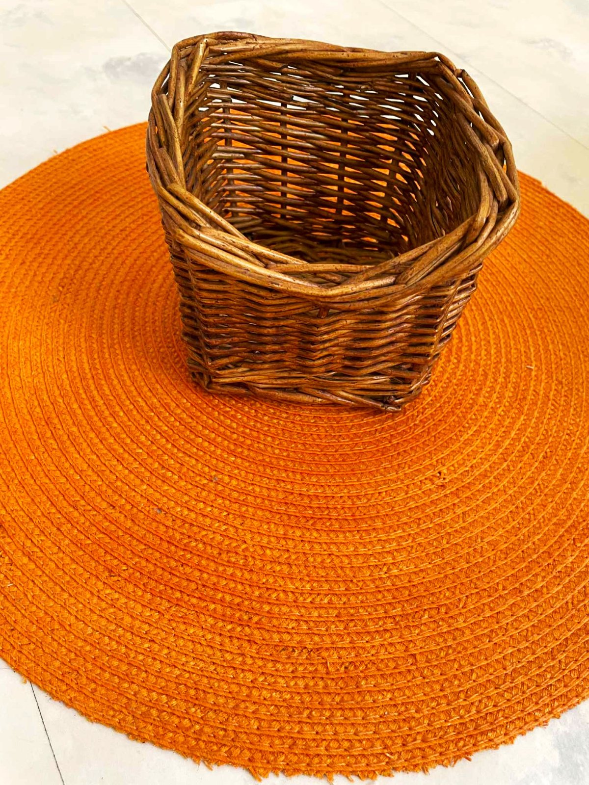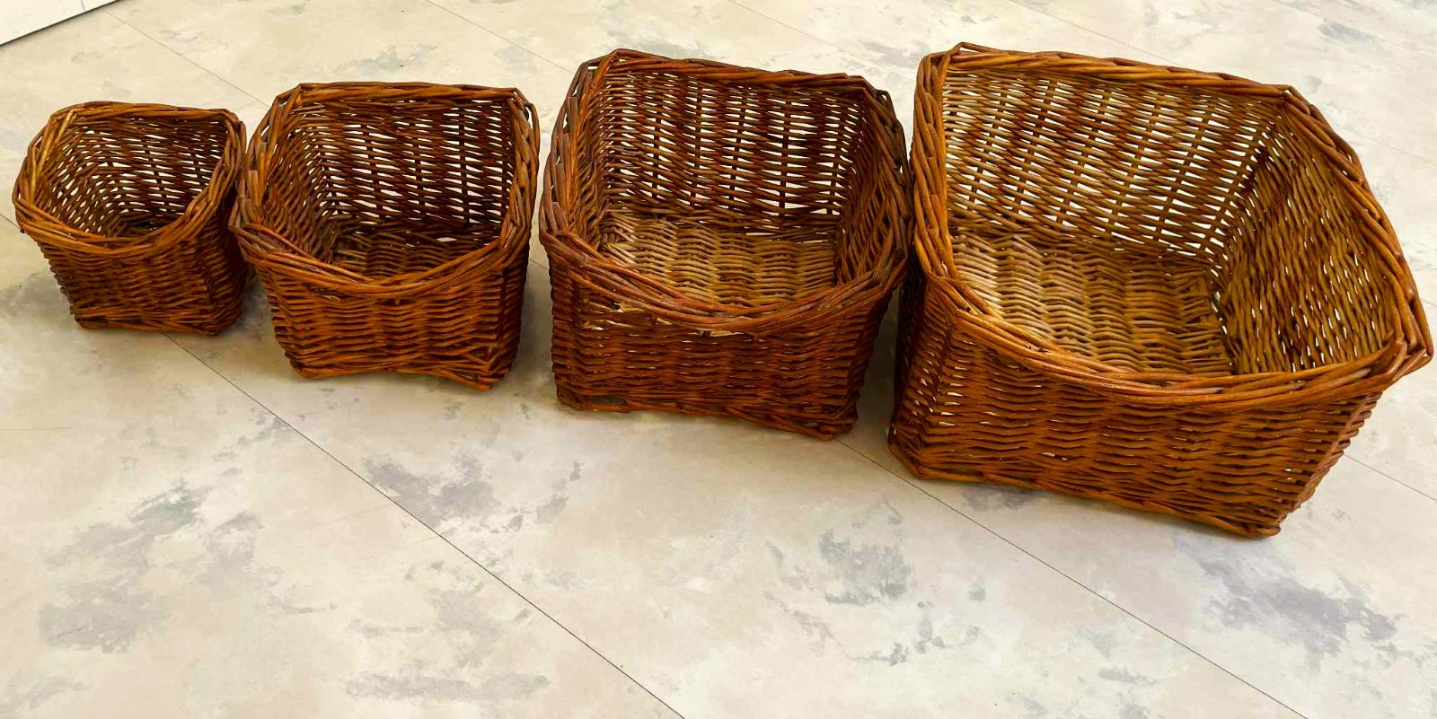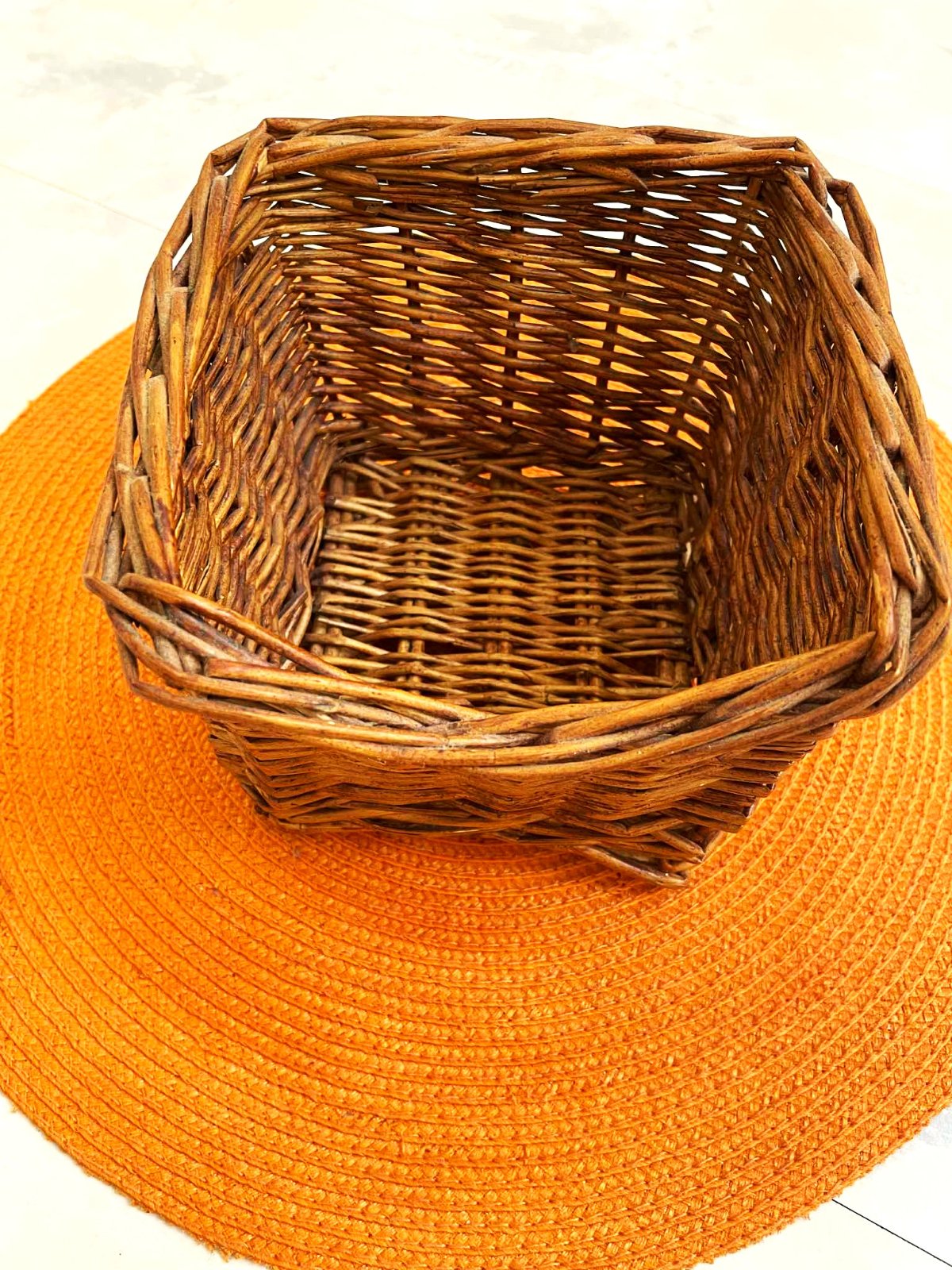 2.) 21 x 21 cm, výška = 13 cm (ten, s poškodeným výpletom ),