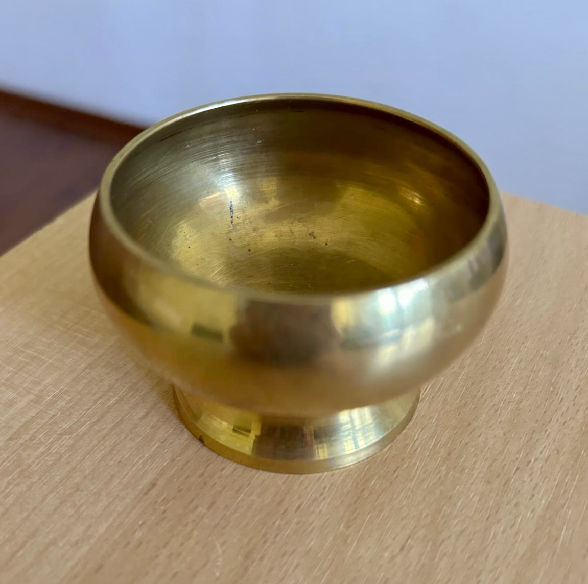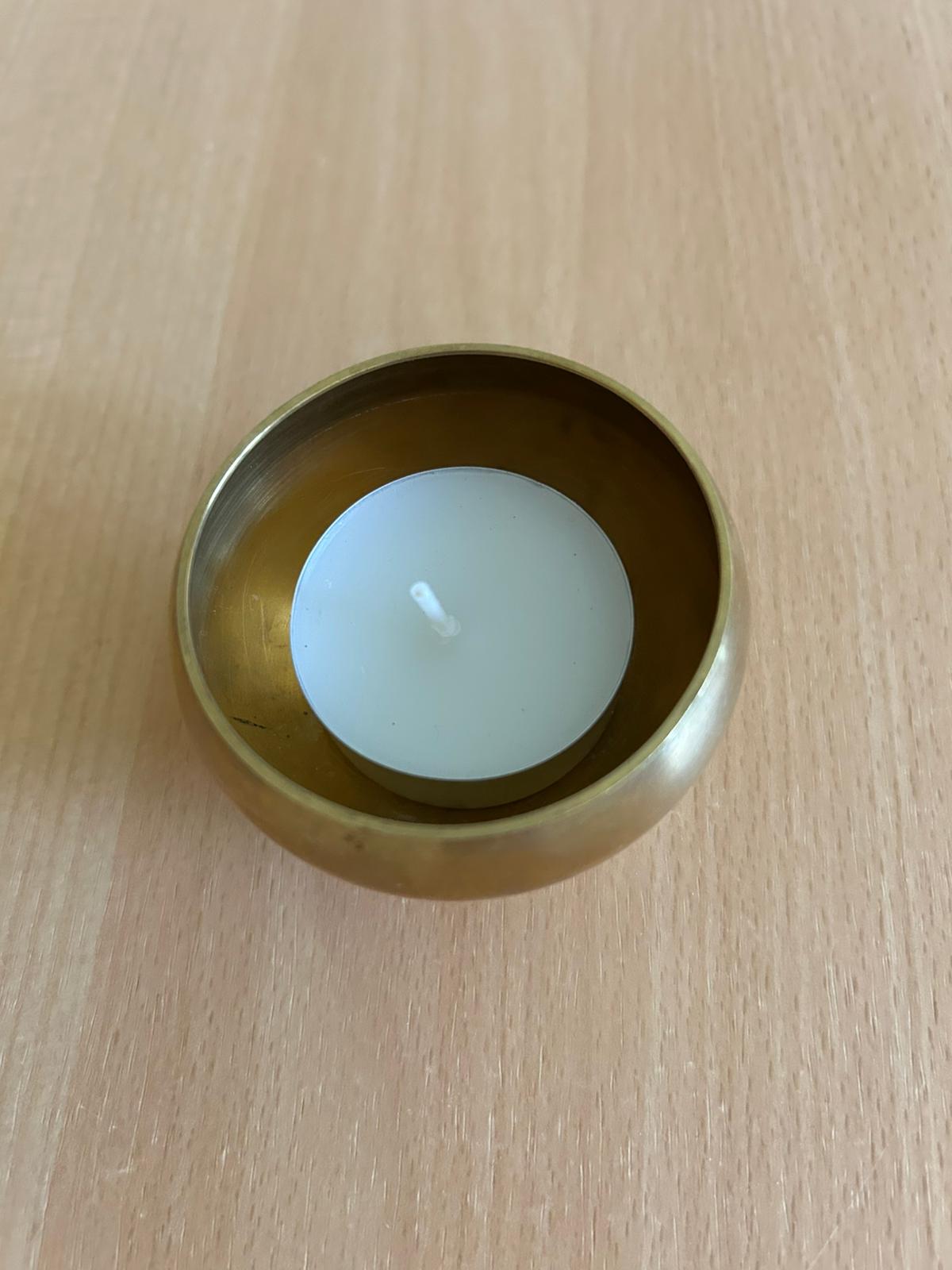 Predám mosadznú nádobu v zlatej farbe vhodnú na čajovú sviečku alebo na vydymovací kužeľ, prípadne na odkladanie šperkov. Rozmery: 6x5 x 5,5 cm.