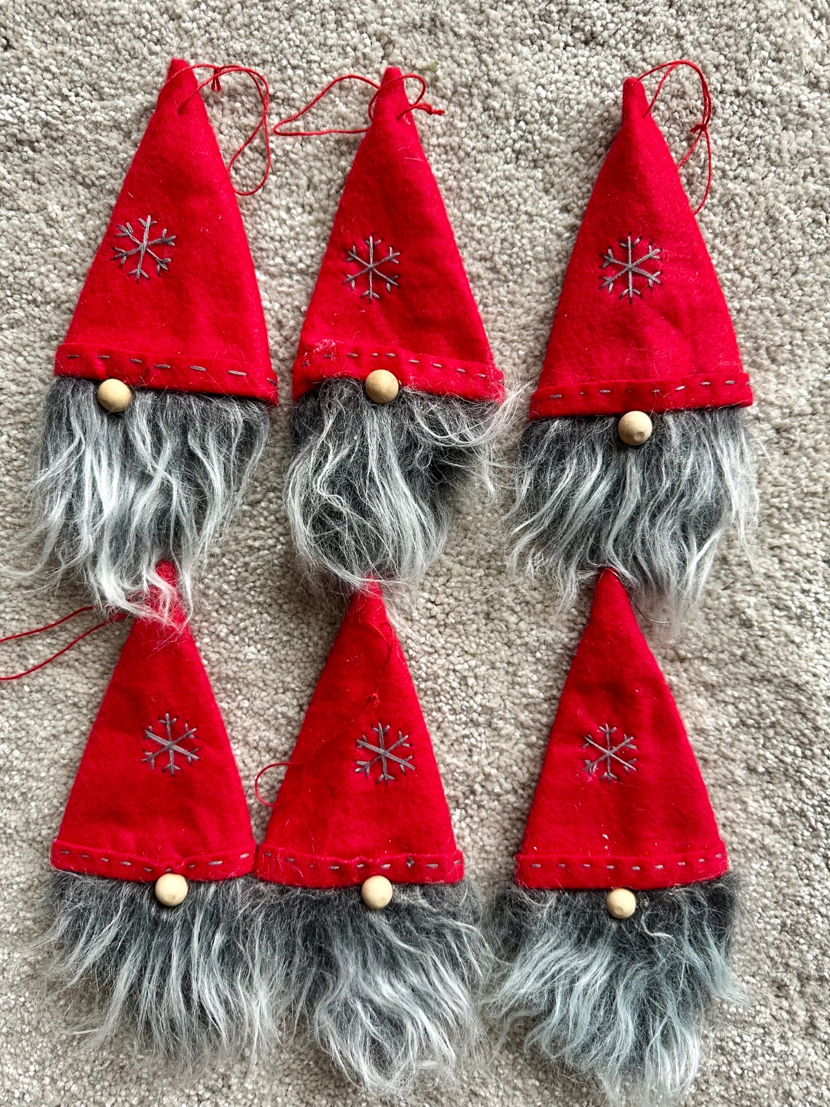 Výška 17cm, jednému chýba šnúrka na zavesenie, má kovový háčik. Cena spolu 2€